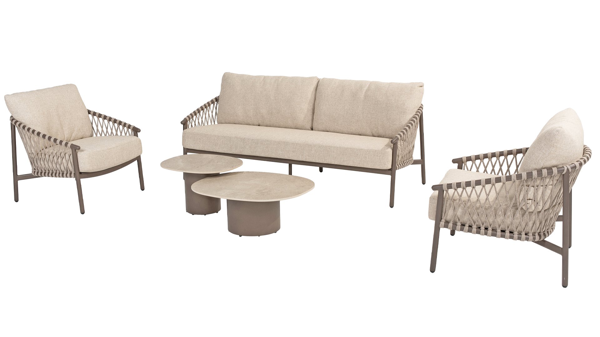 Ontdek de ultieme balans tussen stijl en comfort met onze Allora Terra metallic loungeset met grijs rope, perfect voor je tuin. De 4SO Allora heeft een strak, metalen frame in een luxe bronzen tint. Dit voegt een moderne, verfijnde touch toe aan je buitenruimte. Het zachte grijze rope biedt niet alleen een elegant contrast, maar zorgt ook voor uitzonderlijk comfort en duurzaamheid. De 4Seasons Allora loungesets zijn weerbestendig, onderhoudsvriendelijk en ontworpen om de hele zomer lang je favoriete plek te zijn om te relaxen. Transformeer je tuin in een oase van rust en stijl – de perfecte lounge voor buiten!