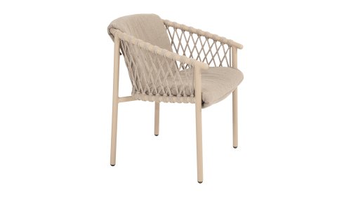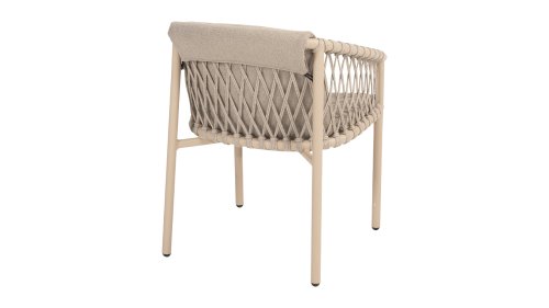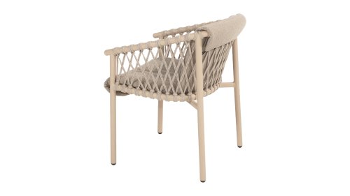 De 4SO Allora stoel is een stijlvolle en comfortabele keuze voor zowel binnen- als buitengebruik, met een moderne uitstraling die past in diverse tuinsettings. De stoel is verkrijgbaar in twee varianten: Latte en Terre. De Allora stoel is vervaardigd uit rope draad en gepoedercoat aluminium, wat zorgt voor zowel duurzaamheid als een lichte, moderne uitstraling. Het gebruik van rope draad maakt de stoel speels en ademend. Het gepoedercoat aluminium frame biedt extra bescherming tegen weersinvloeden en maakt de stoel onderhoudsvriendelijk en lichtgewicht. De stof van de zitting is gemaakt van Olefin, een synthetisch materiaal dat bekend staat om zijn stevigheid en weerbestendigheid. De Bouclé Clay stoffering voegt een luxueuze en zachte textuur toe, die zowel esthetisch aantrekkelijk als praktisch is. In de Allora serie is er ook een loungeset verkrijgbaar: 4 Seasons Outdoor Allora Loungeset, om het gehele plaatje af te maken!