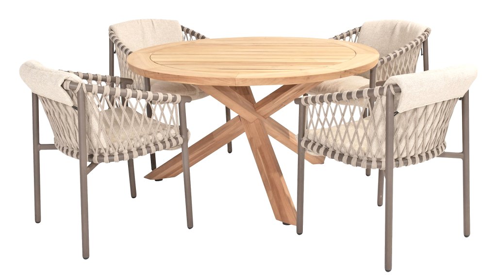 De topper van de collectie kun je deze tafel gerust noemen. Het kwalitatieve teak, in combinatie met de fraaie kruispoot, maken van deze Taste by 4Seasons Prado Ø130cm tafel, een pareltje. Te combineren met vrijwel elke diningstoel uit onze collectie is er voor ieder wat wils. Eventueel met de Prado Lazy Susan te combineren. Het blad is zowel in teakhout als keramiek verkrijgbaar. De Prado met teakhouten blad is verkrijgbaar met de volgende tafelpoten: Teak, Latte en Antraciet. Toch een liefhebber voor keramiek? Bekijk hier dan de Prado keramiek met de tafelpoten: Terre & Latte.