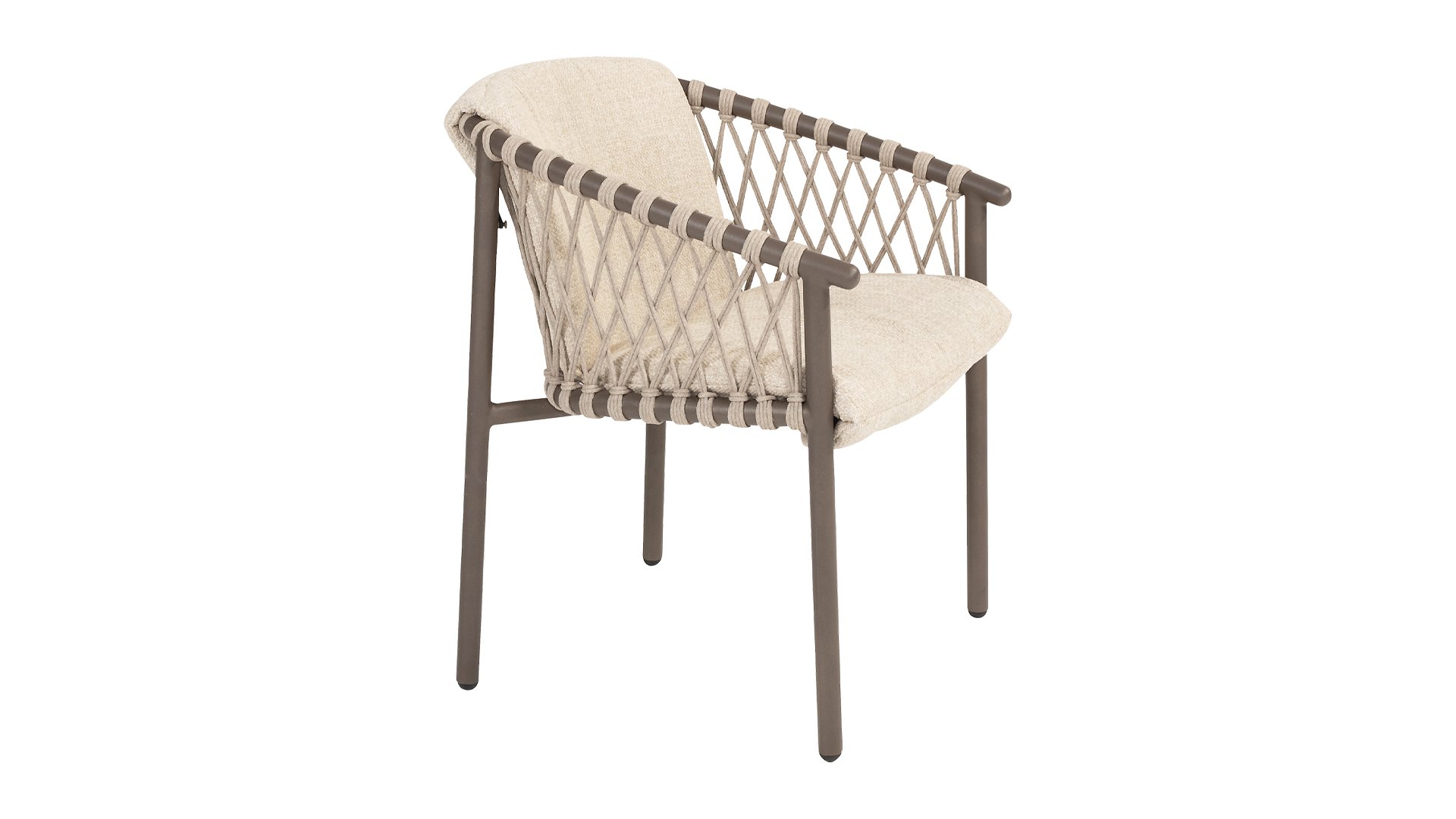 De 4SO Allora stoel is een stijlvolle en comfortabele keuze voor zowel binnen- als buitengebruik, met een moderne uitstraling die past in diverse tuinsettings. De stoel is verkrijgbaar in twee varianten: Latte en Terre. De Allora stoel is vervaardigd uit rope draad en gepoedercoat aluminium, wat zorgt voor zowel duurzaamheid als een lichte, moderne uitstraling. Het gebruik van rope draad maakt de stoel speels en ademend. Het gepoedercoat aluminium frame biedt extra bescherming tegen weersinvloeden en maakt de stoel onderhoudsvriendelijk en lichtgewicht. De stof van de zitting is gemaakt van Olefin, een synthetisch materiaal dat bekend staat om zijn stevigheid en weerbestendigheid. De Bouclé Clay stoffering voegt een luxueuze en zachte textuur toe, die zowel esthetisch aantrekkelijk als praktisch is. In de Allora serie is er ook een loungeset verkrijgbaar: 4 Seasons Outdoor Allora Loungeset, om het gehele plaatje af te maken!