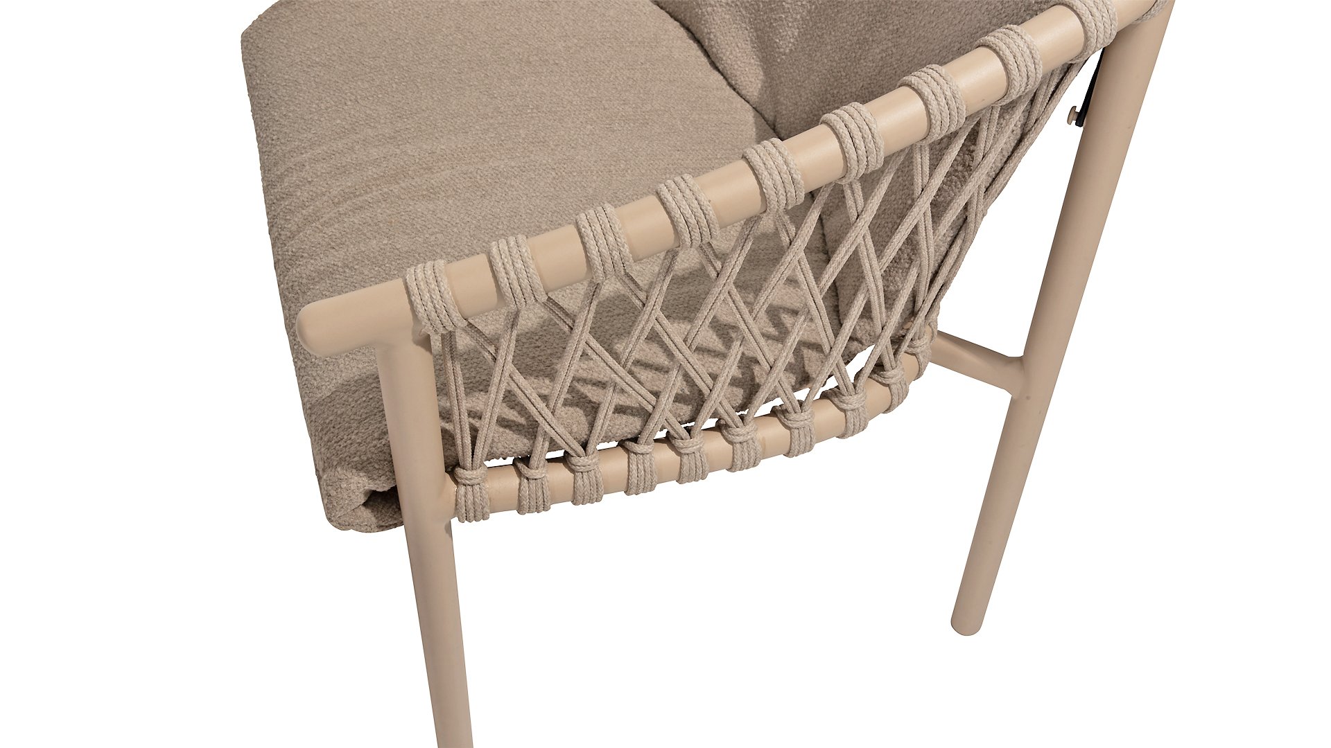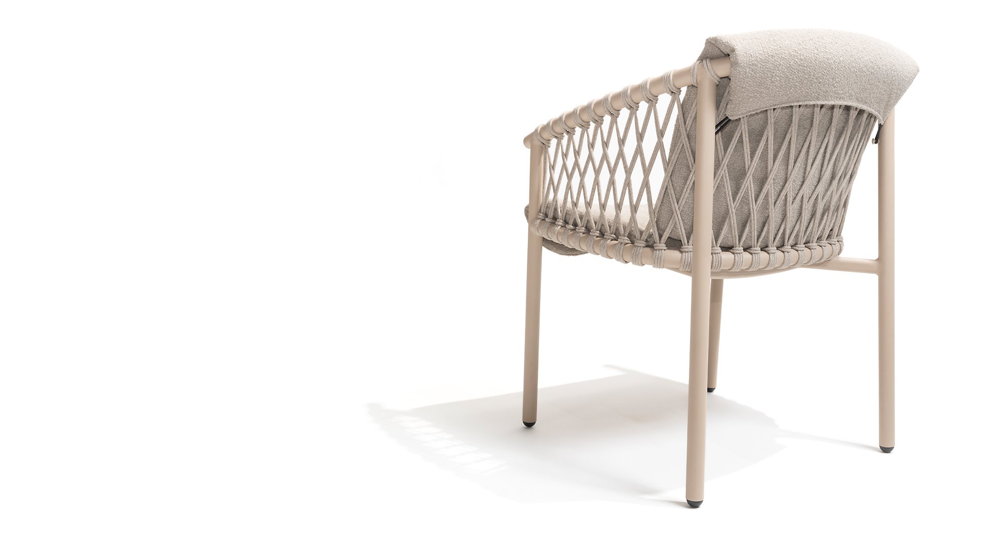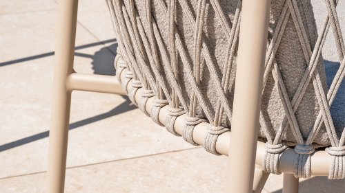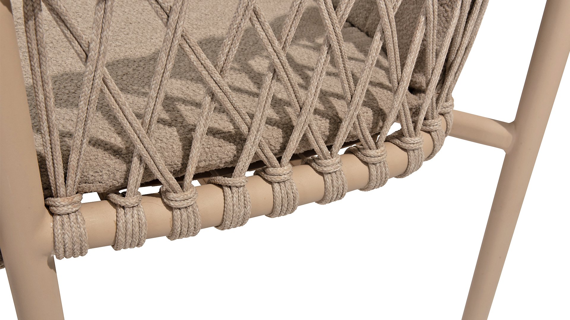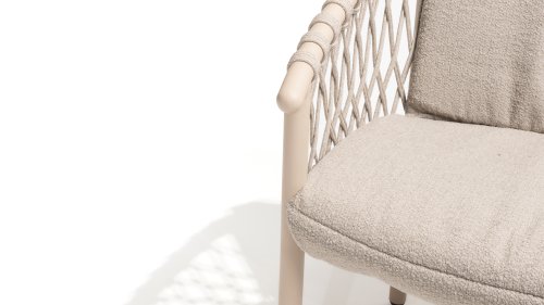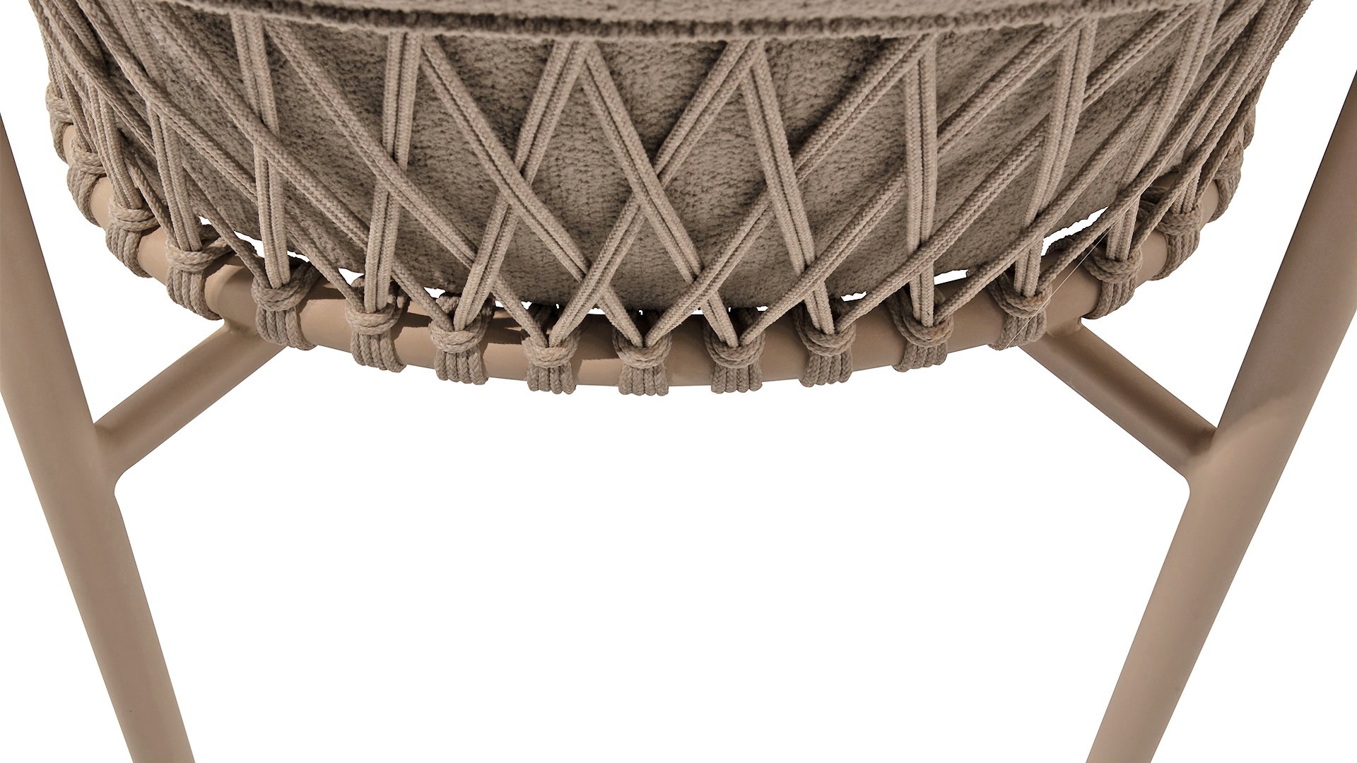 De 4SO Allora stoel is een stijlvolle en comfortabele keuze voor zowel binnen- als buitengebruik, met een moderne uitstraling die past in diverse tuinsettings. De stoel is verkrijgbaar in twee varianten: Latte en Terre. De Allora stoel is vervaardigd uit rope draad en gepoedercoat aluminium, wat zorgt voor zowel duurzaamheid als een lichte, moderne uitstraling. Het gebruik van rope draad maakt de stoel speels en ademend. Het gepoedercoat aluminium frame biedt extra bescherming tegen weersinvloeden en maakt de stoel onderhoudsvriendelijk en lichtgewicht.