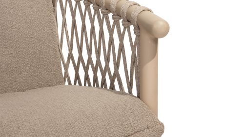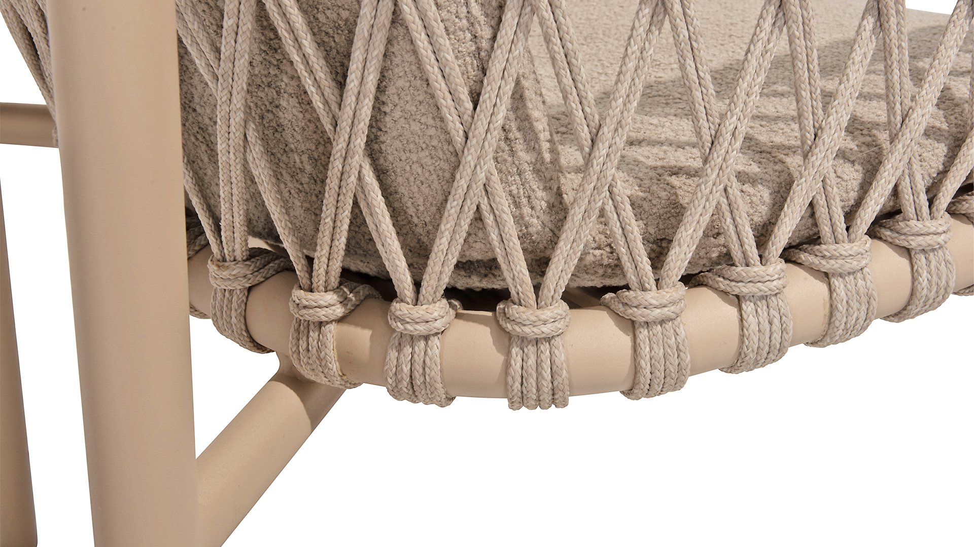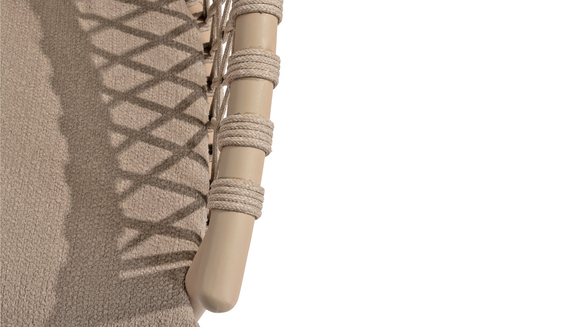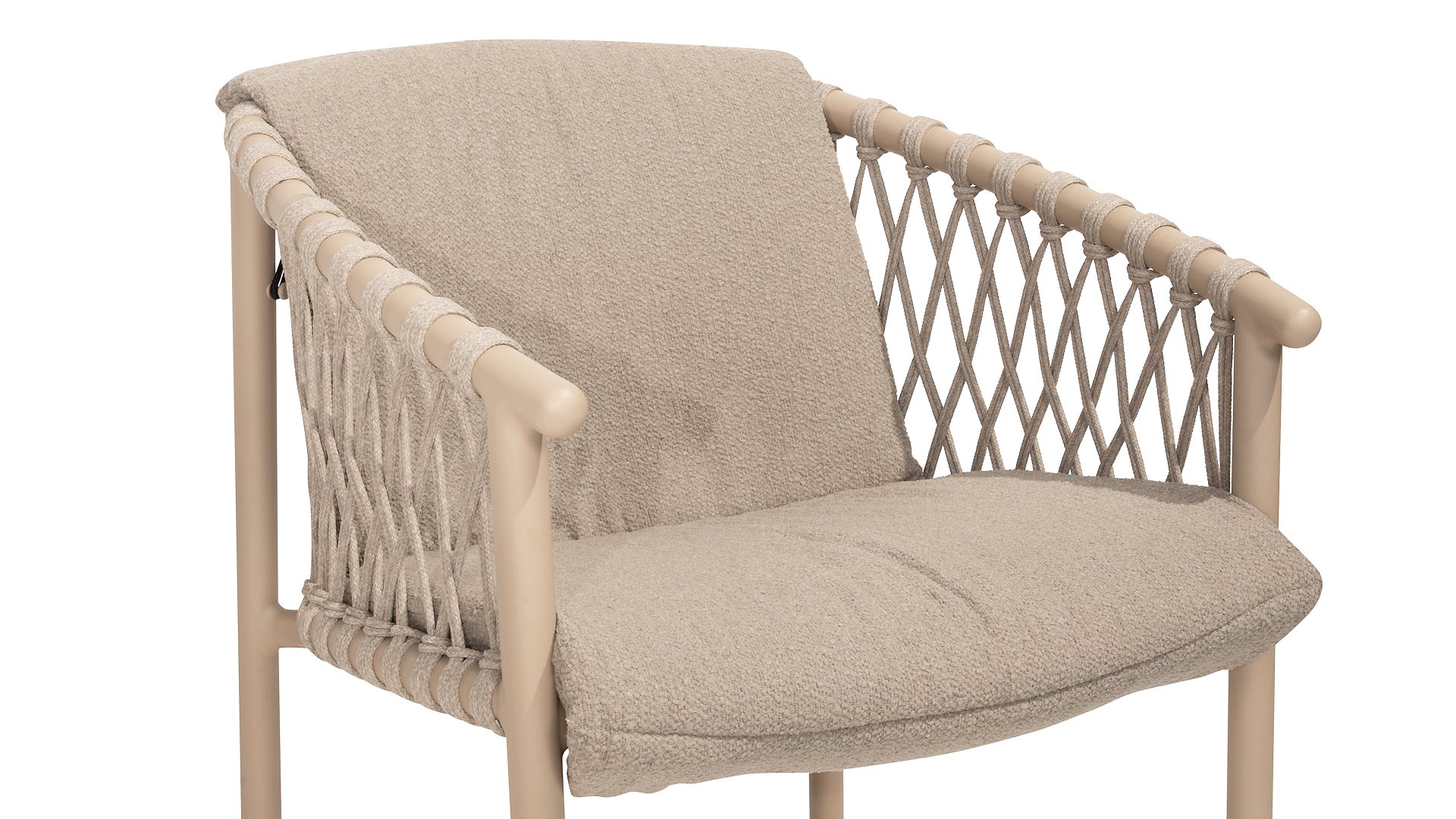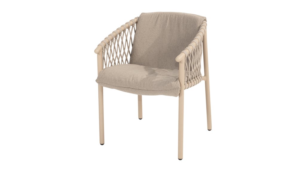De 4SO Allora stoel is een stijlvolle en comfortabele keuze voor zowel binnen- als buitengebruik, met een moderne uitstraling die past in diverse tuinsettings. De stoel is verkrijgbaar in twee varianten: Latte en Terre. De Allora stoel is vervaardigd uit rope draad en gepoedercoat aluminium, wat zorgt voor zowel duurzaamheid als een lichte, moderne uitstraling. Het gebruik van rope draad maakt de stoel speels en ademend. Het gepoedercoat aluminium frame biedt extra bescherming tegen weersinvloeden en maakt de stoel onderhoudsvriendelijk en lichtgewicht.