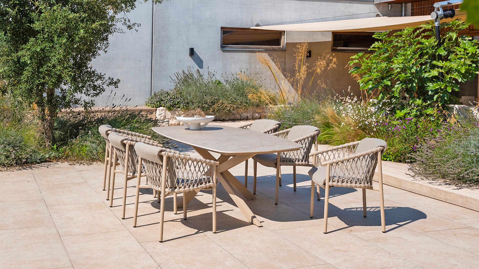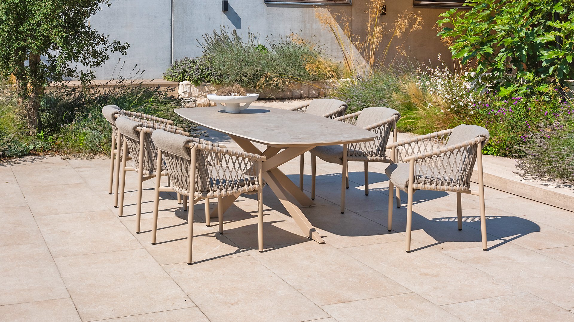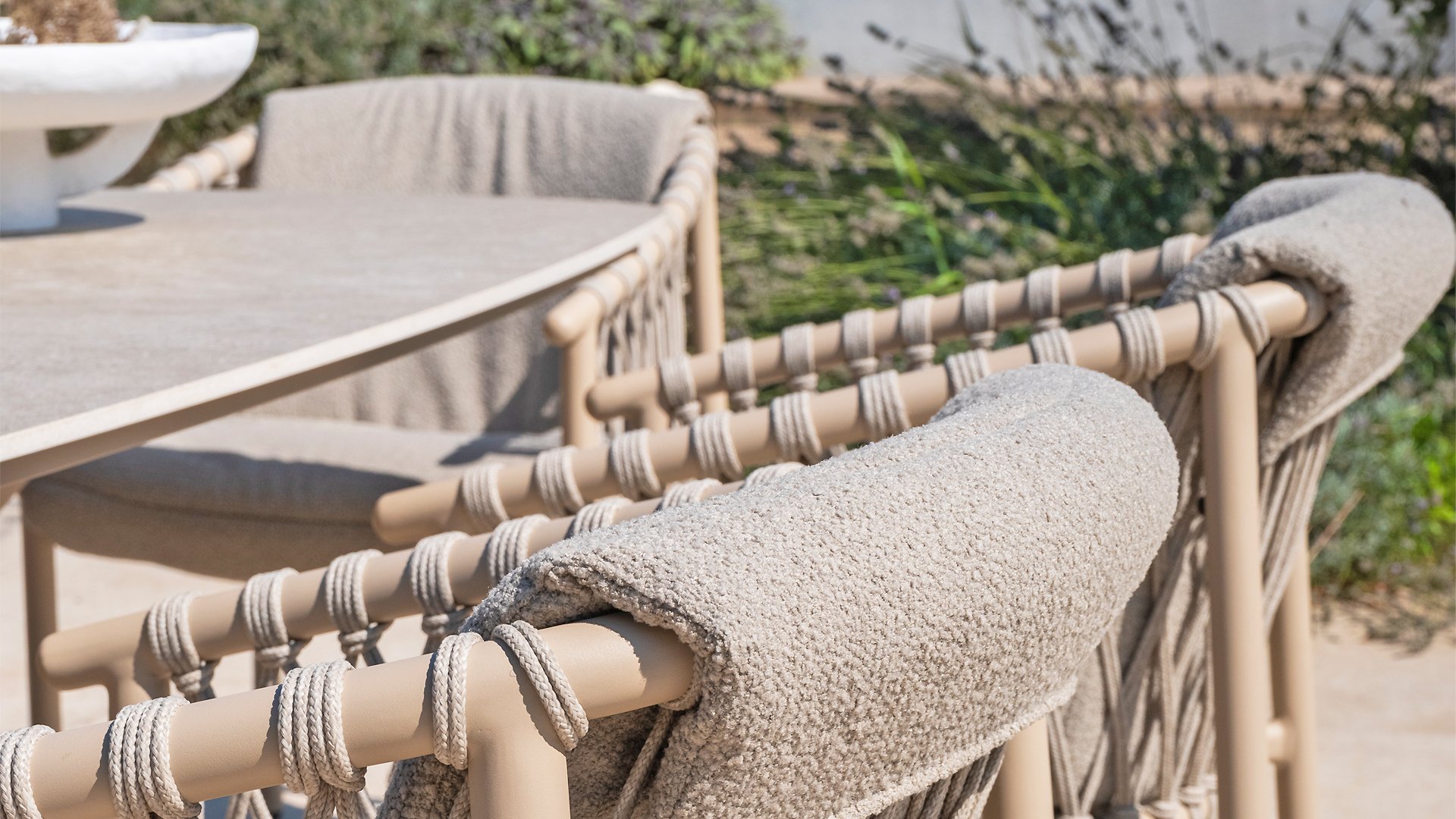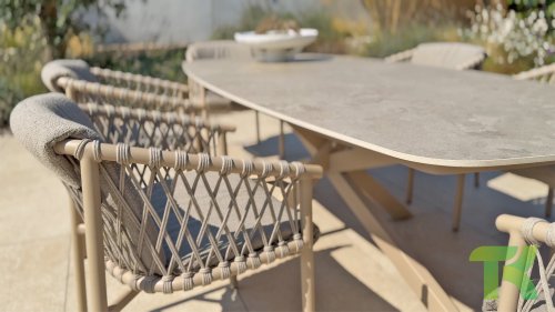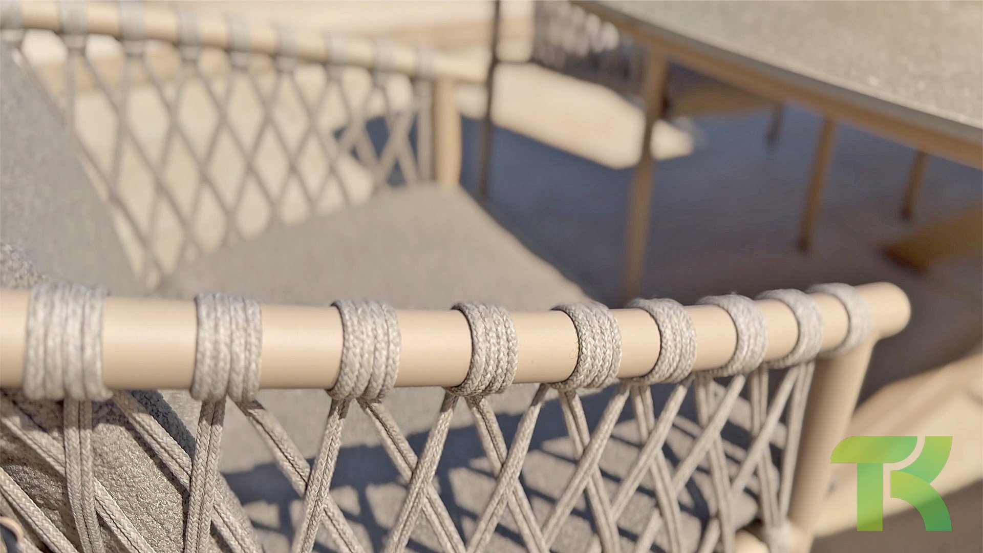 De 4SO Allora stoel is een stijlvolle en comfortabele keuze voor zowel binnen- als buitengebruik, met een moderne uitstraling die past in diverse tuinsettings. De stoel is verkrijgbaar in twee varianten: Latte en Terre. De Allora stoel is vervaardigd uit rope draad en gepoedercoat aluminium, wat zorgt voor zowel duurzaamheid als een lichte, moderne uitstraling. Het gebruik van rope draad maakt de stoel speels en ademend. Het gepoedercoat aluminium frame biedt extra bescherming tegen weersinvloeden en maakt de stoel onderhoudsvriendelijk en lichtgewicht.