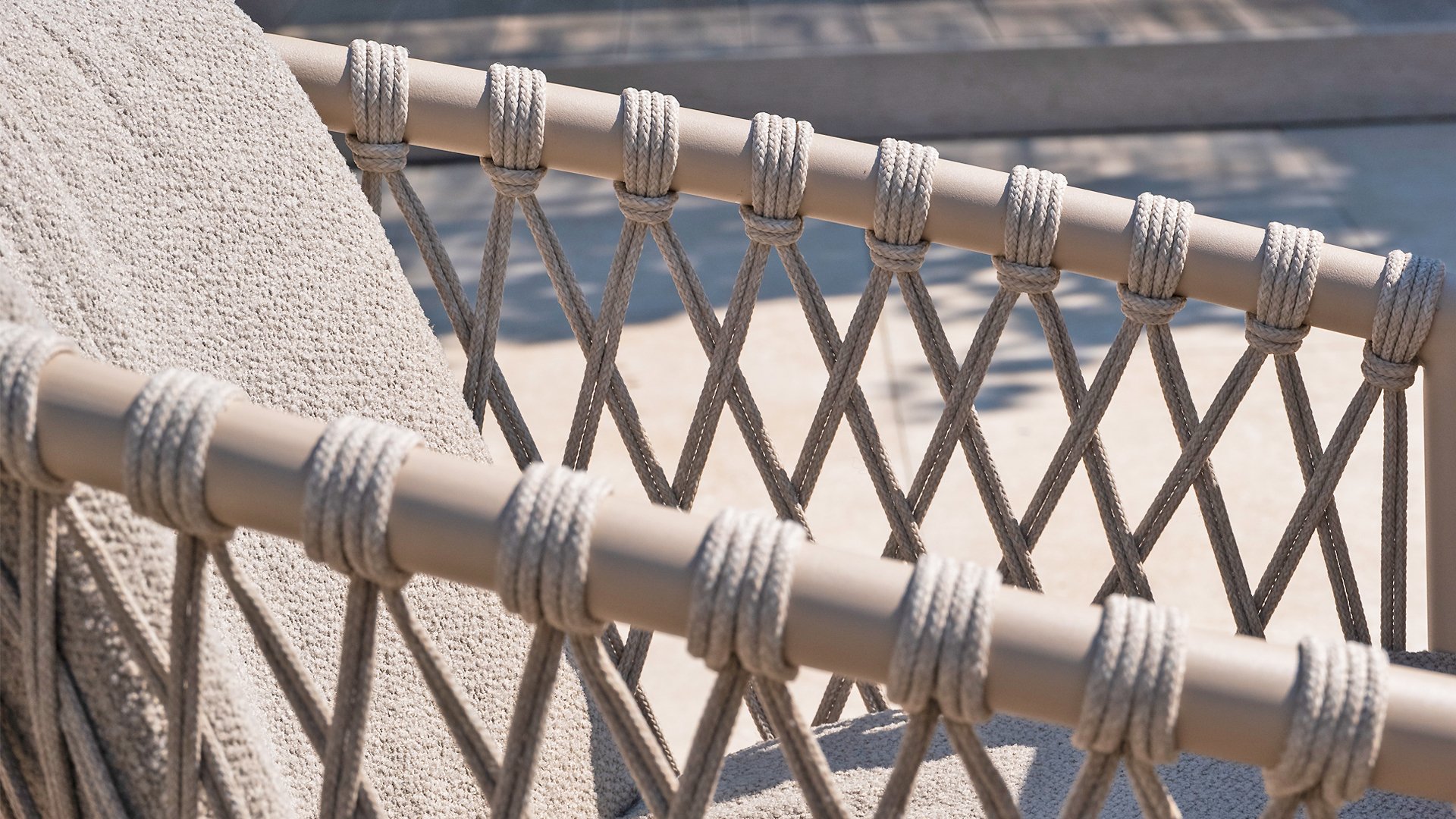 Dit prachtige materiaal is perfect voor buitengebruik, want Taste Rope is niet zo maar een gewone veter waar u uw schoenen mee strikt. Taste gebruikt zeer hoge kwaliteits Rope gemaakt van 100% SDP (Slution Dyed Polypropylene). Dit materiaal is extreem sterk en heeft een zeer klein rekbaarheids percentage. Polyproylene is op olie basis waardoor vuil en verontreiniging nauwelijks in kan dringen, net als onze kussens. Taste biedt exclusieve designs, waarbij hand geweven Rope patronen en technieken worden gebruikt.