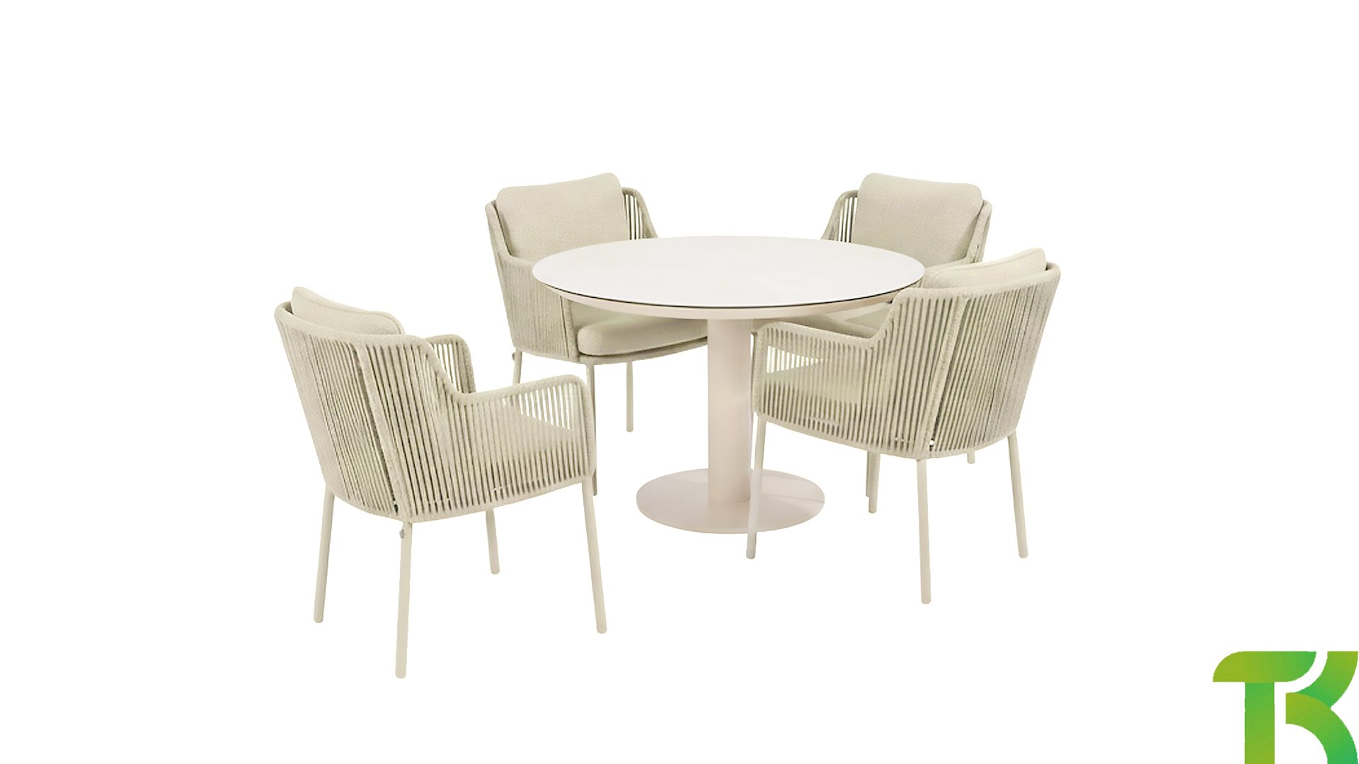 De trendy Latte-kleur geeft deze rope tuinset een zachte, moderne uitstraling. Het warme beige past zowel in natuurlijke tuinen als op strakke, design terrassen. Dankzij hoogwaardige materialen zoals aluminium en weatherproof rope blijft de kleur jarenlang mooi. Ideaal voor wie duurzame en onderhoudsarme tuinmeubelen zoekt.