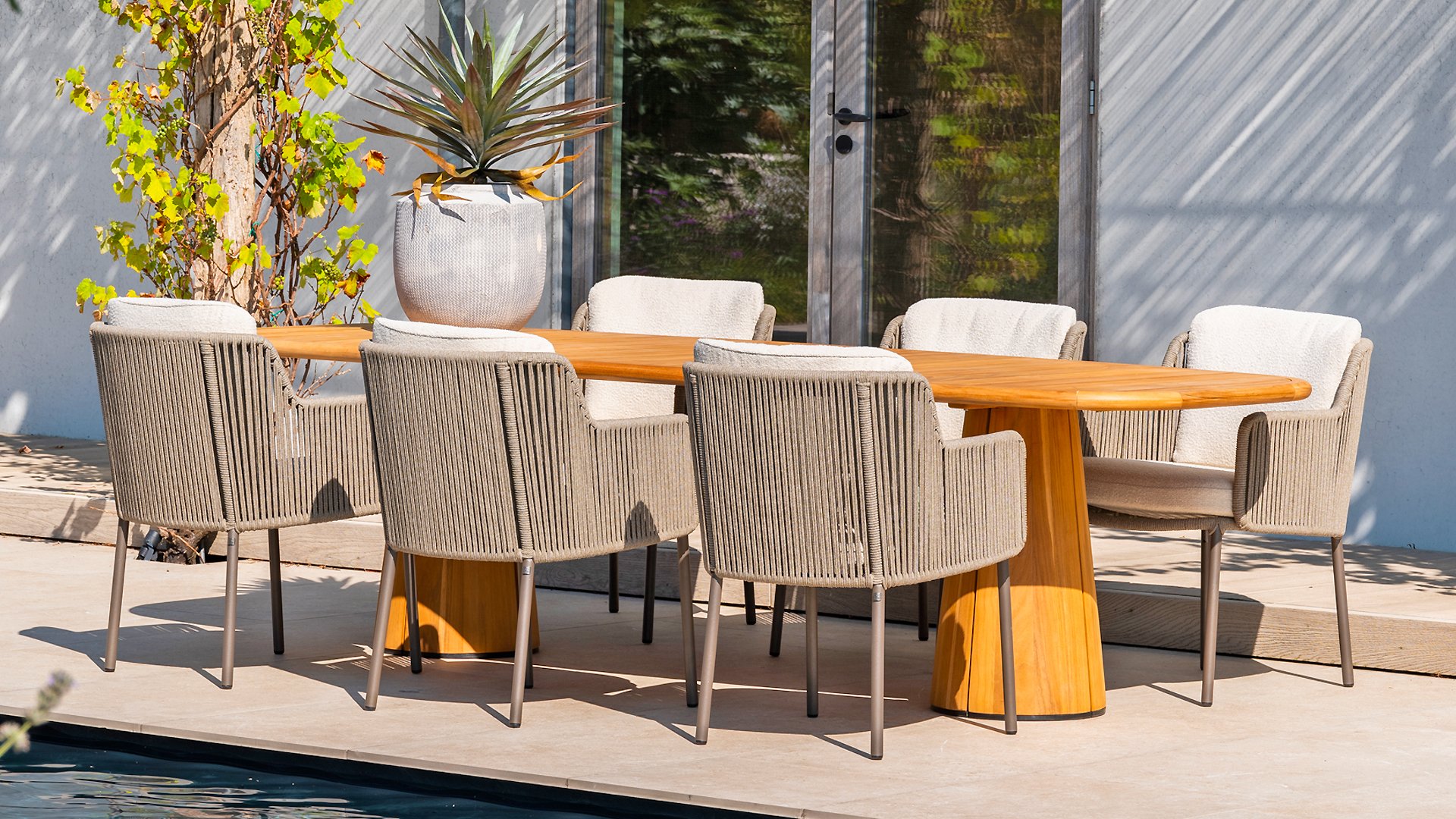 Aluminium is erg onderhoudsvriendelijk en lichtgewicht, net zoals ons vlechtwerk dat is. Deze praktische meubelen zijn gemakkelijk te reinigen. Ons aluminium met een stevige poedercoating is weerbestendig, en bestand tegen UV-straling. Aluminium is niet aan roest onderhevig, is tijdloos en stijlvol.