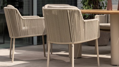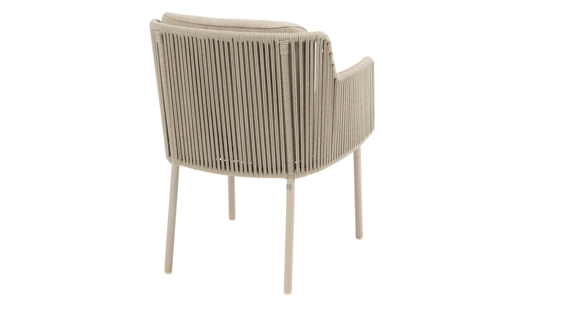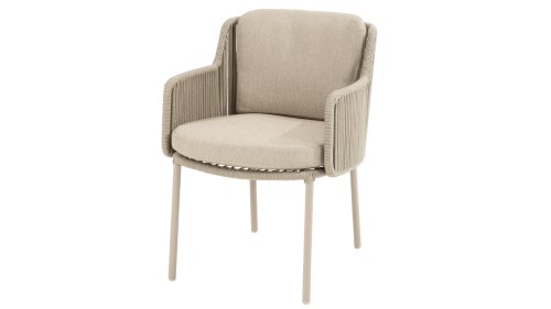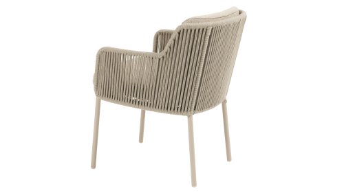 De 4 Seasons Outdoor Bernini is de perfecte aanvulling voor je tuin of terras. Met zijn warme latte kleur en luxueuze kussens. De ergonomische rugleuning biedt uitstekende ondersteuning, zodat je comfortabel kunt genieten van lange zomerdagen buiten. Gemaakt van gepoedercoat staal en Rope draad, is deze stoel niet alleen bestand voor het buitenleven, maar ook bijzonder duurzaam en weerbestendig. De kussens gemaakt van Olefin stof. Olefins zijn stoffen die bestand zijn tegen ultraviolette straling en temperatuurverschillen en zijn sneldrogende stoffen.