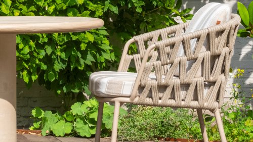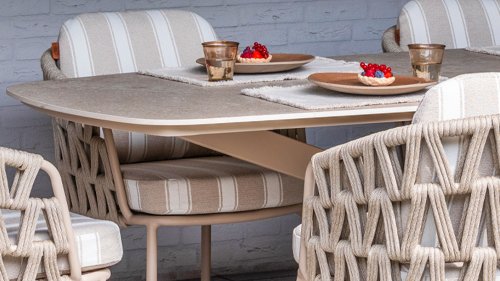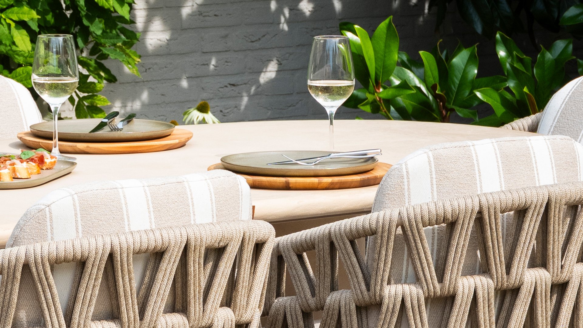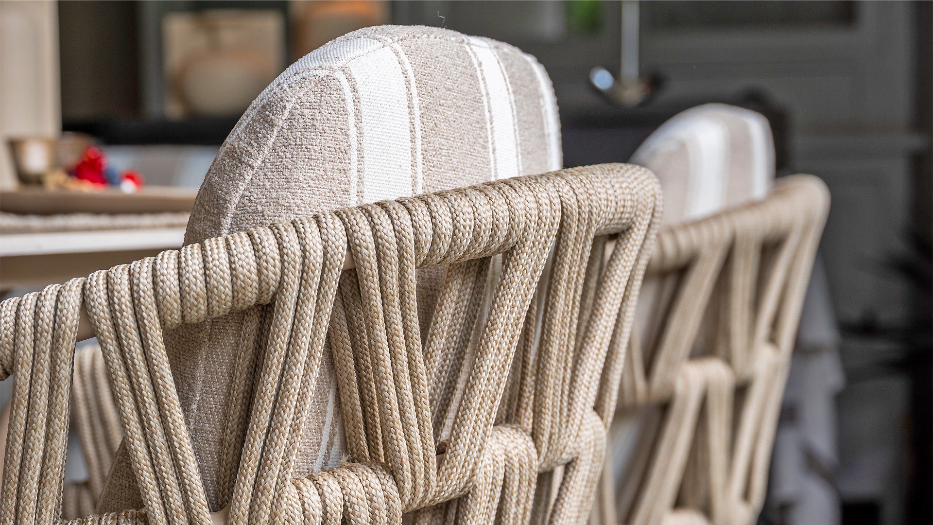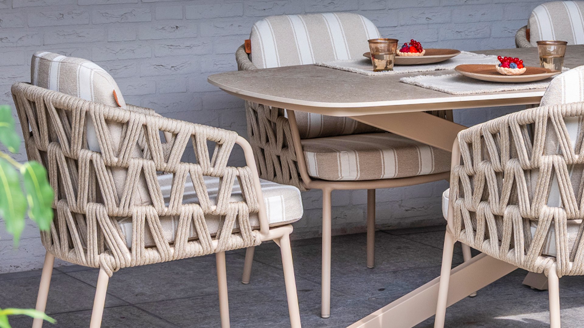 Weerbestendig: Duurzaam gepoedercoat aluminium en weersbestendige Rope vlechtwerk en Olefin kussens.