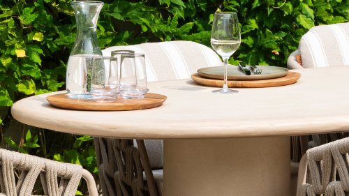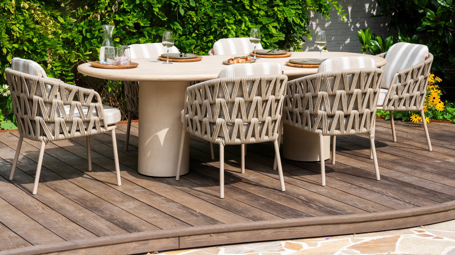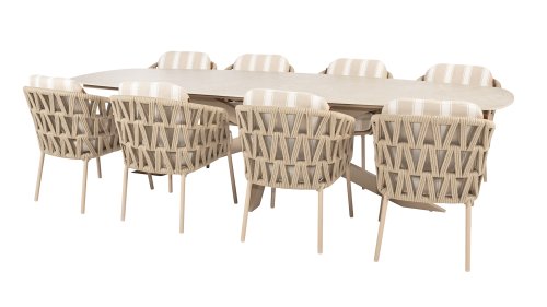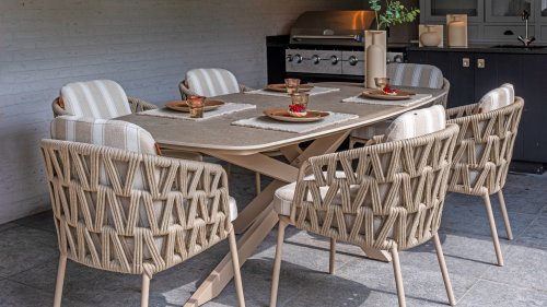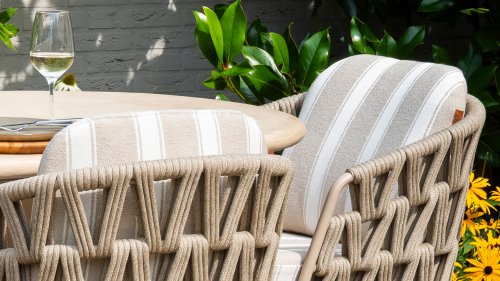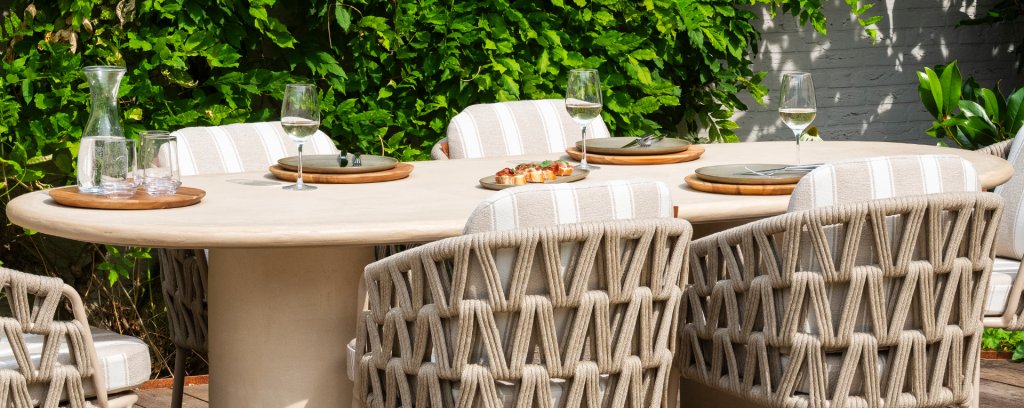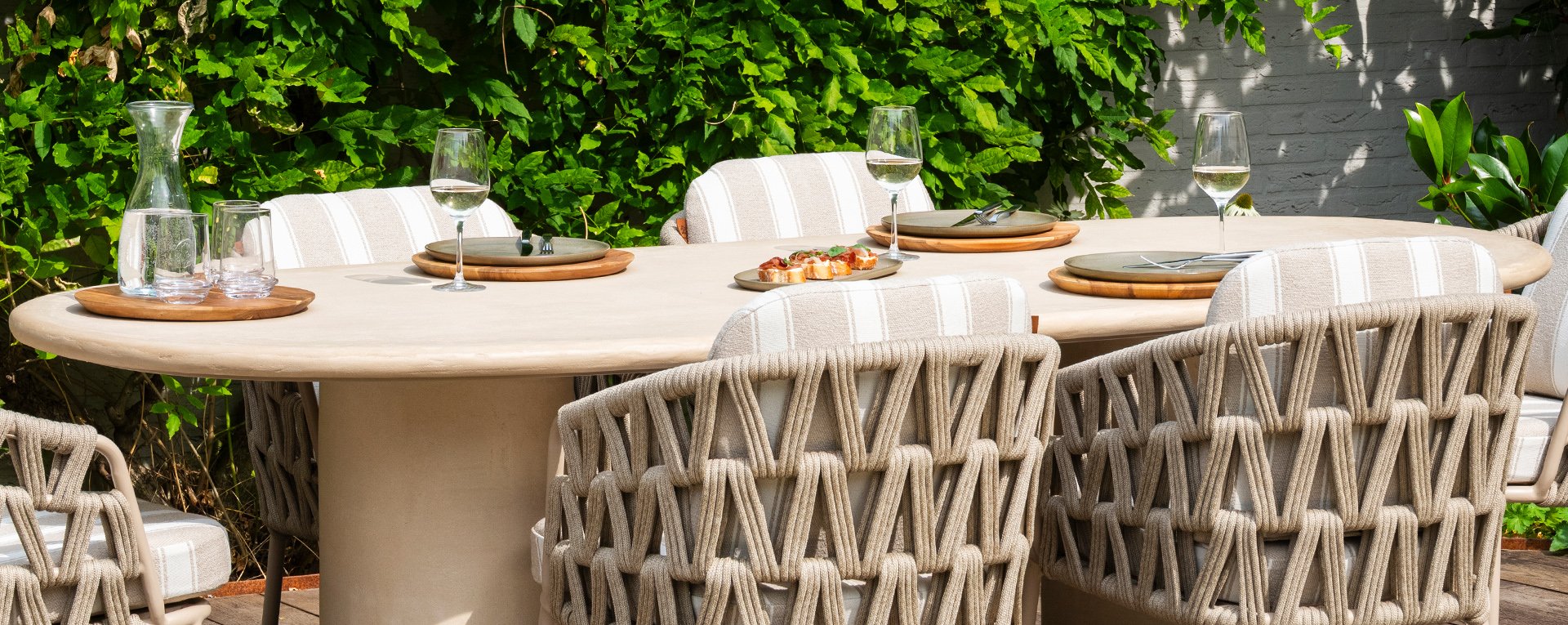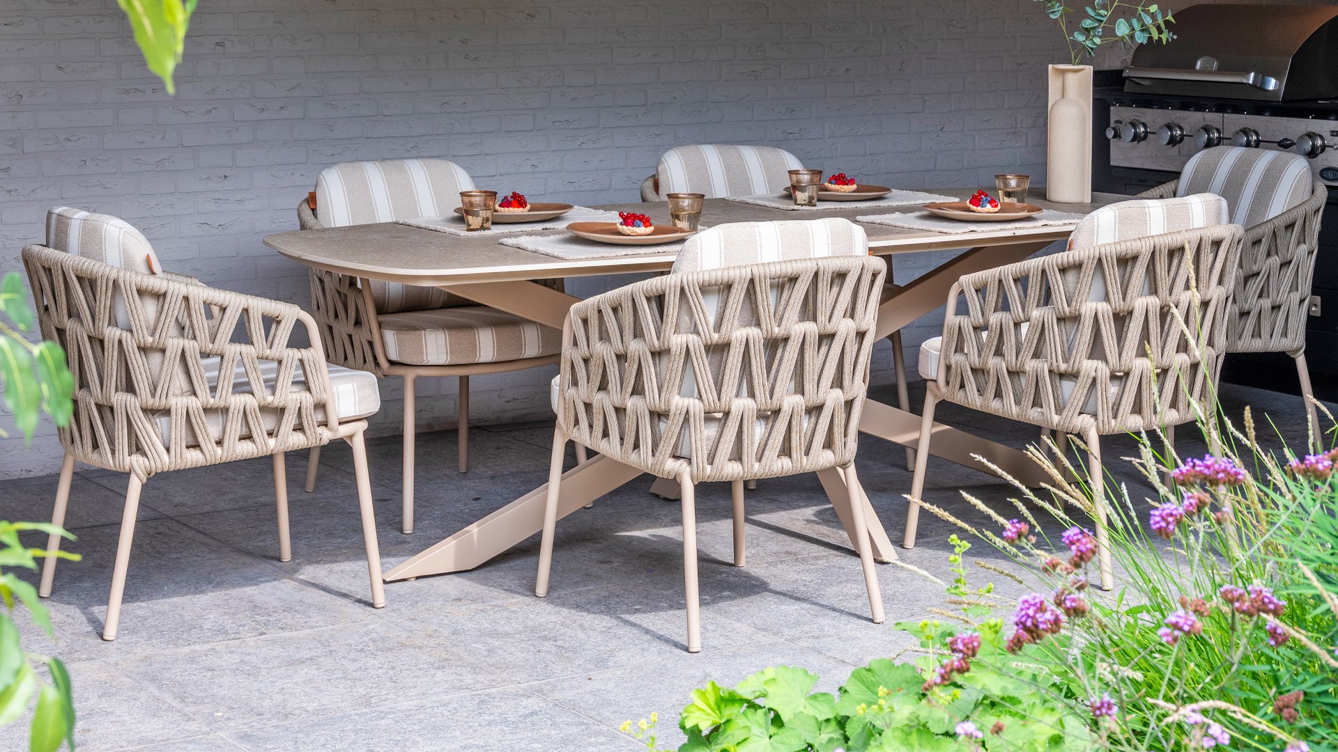 Weerbestendig: Duurzaam gepoedercoat aluminium en weersbestendige Rope vlechtwerk en Olefin kussens.