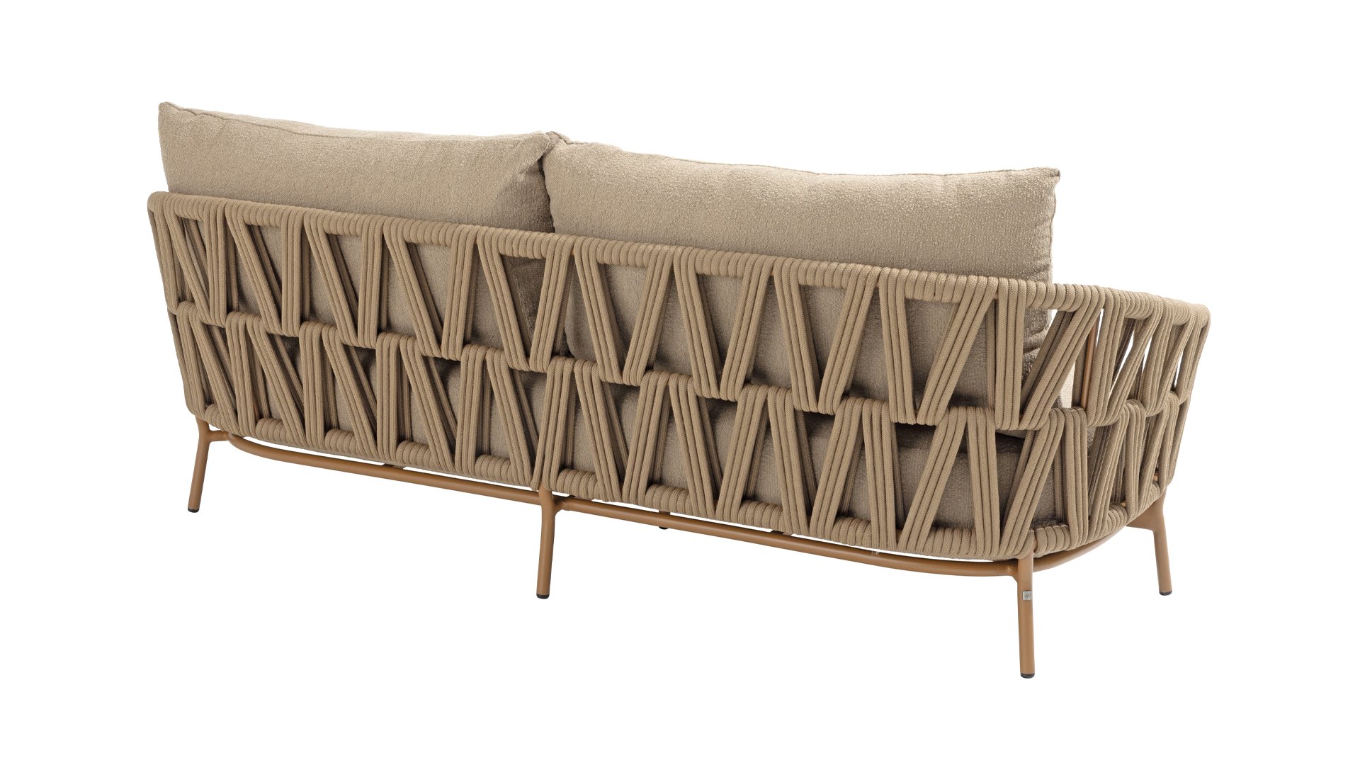 Het stevige frame is vervaardigd uit gepoedercoat aluminium in een warme aardetint, gecombineerd met opvallend dik Rope vlechtwerk. Deze ambachtelijke afwerking geeft de Biarritz serie een robuuste maar toch verfijnde uitstraling. De ruime zittingen, dikke kussens en zachte texturen maken deze lounge tot een luxueuze plek om lange zomerdagen door te brengen.