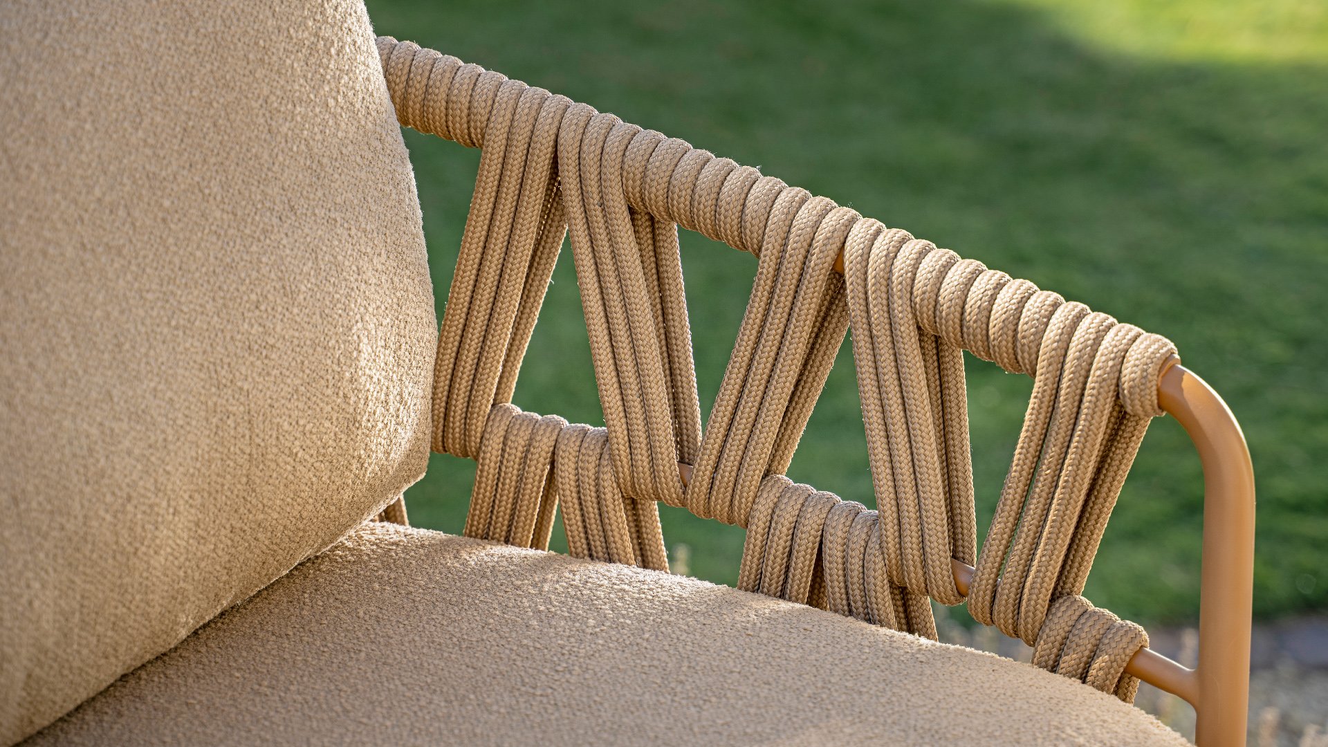 - Natuurlijke uitstraling: De bruine rope bekleding geeft de stoel een natuurlijke, warme en vriendelijke uitstraling, perfect voor een ontspannen buitenomgeving.