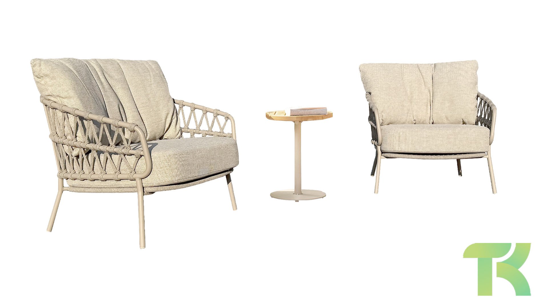 De 4 Seasons Outdoor Calpi serie in een nieuw jasje, Latte. Alleen verkrijgbaar bij Tuinmeubelkorting.nl! Het heeft een eigentijds design en geeft ieder terras de premium en warme looks waar u naar op zoekt bent. De brede rope delen zijn op een originele manier gevlochten en geeft de Calpi een open karakter. De 4Seasons Calpi wordt geleverd met kussens in een all weather stof. Deze stof heeft een water en vuil werende werking, waardoor deze bestand zijn tegen vele weersinvloeden. Het frame is gemaakt van gepoedercoat RVS, waardoor de 4SO Calpi Loungeset zeer geschikt is om het hele jaar door buiten te laten staan.