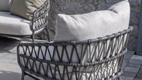 De Calpi Lounge serie van 4 Seasons Outdoor, verkrijgbaar in Antraciet én Latte. Het heeft een eigentijds design en geeft ieder terras de premium looks waar u naar op zoekt bent. De brede rope delen zijn op een originele manier gevlochten en geeft de Calpi een open karakter. De 4Seasons Calpi wordt geleverd met kussens in een all weather stof. Deze stof heeft een water en vuil werende werking, waardoor deze bestand zijn tegen vele weersinvloeden. Het frame is gemaakt van gepoedercoat RVS, waardoor de Calpi Loungeset zeer geschikt is om het hele jaar door buiten te laten staan. Bekijk ook de 4SO Calpi Dining of 4SO Calpi Low Dining!