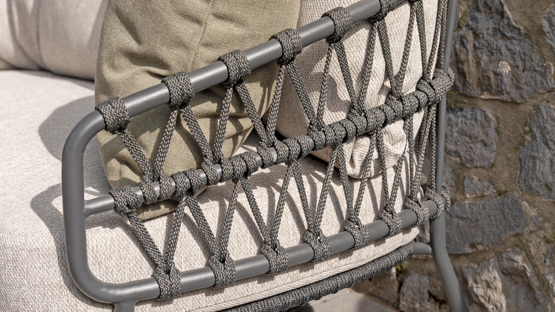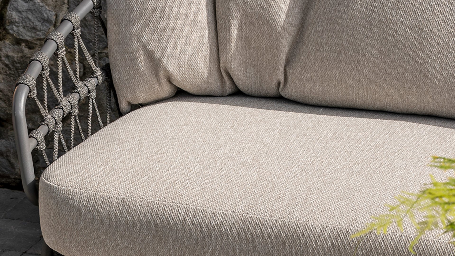 Dit prachtige materiaal is perfect voor buitengebruik, want Taste Rope is niet zo maar een gewone veter waar u uw schoenen mee strikt. Taste gebruikt zeer hoge kwaliteits Rope gemaakt van 100% SDP (Slution Dyed Polypropylene). Dit materiaal is extreem sterk en heeft een zeer klein rekbaarheids percentage. Polyproylene is op olie basis waardoor vuil en verontreiniging nauwelijks in kan dringen, net als onze kussens. Taste biedt exclusieve designs, waarbij hand geweven Rope patronen en technieken worden gebruikt.