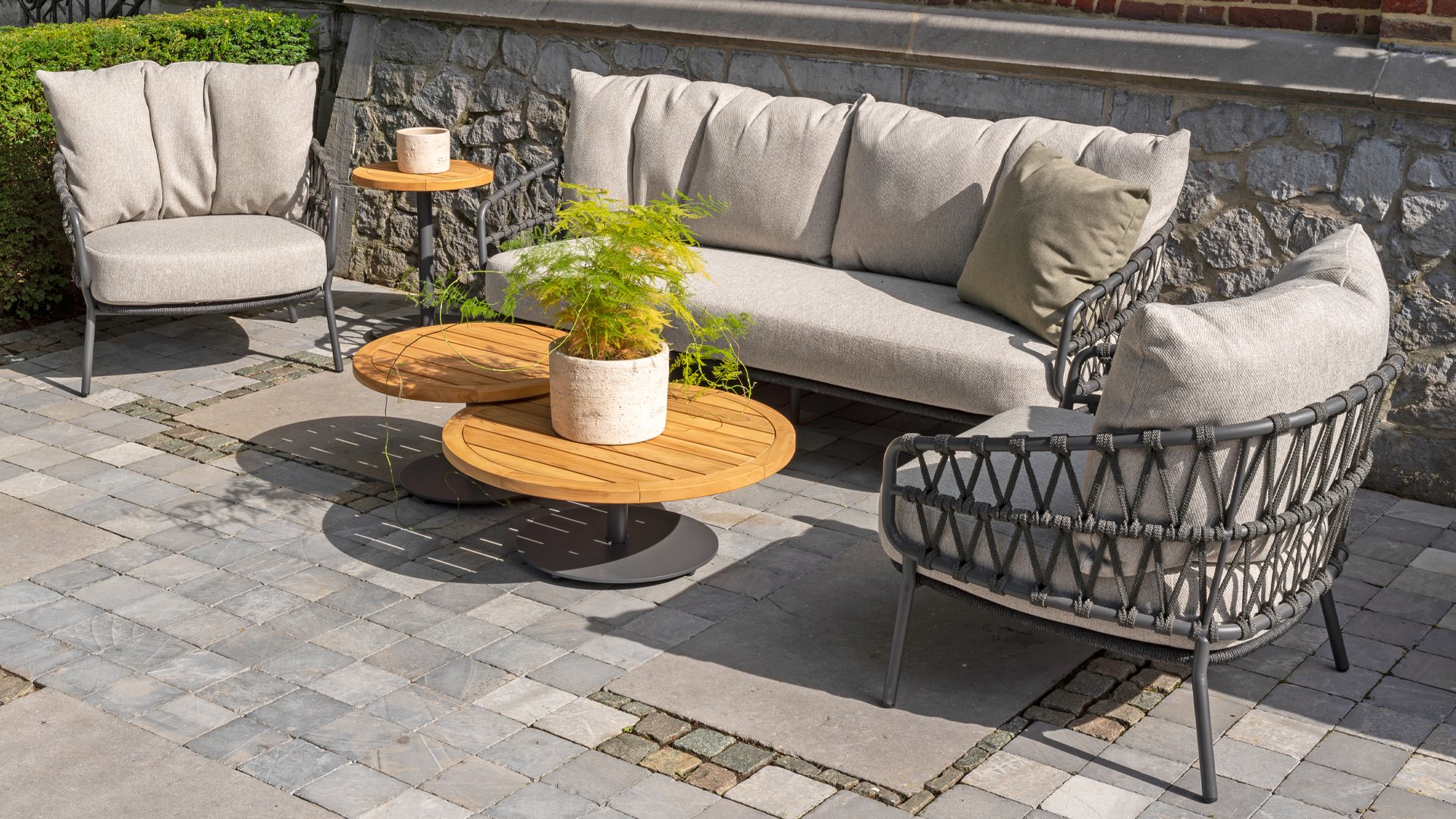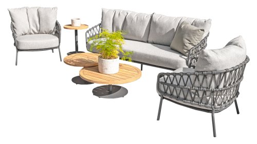 De Calpi Lounge serie van 4 Seasons Outdoor, verkrijgbaar in Antraciet én Latte. Het heeft een eigentijds design en geeft ieder terras de premium looks waar u naar op zoekt bent. De brede rope delen zijn op een originele manier gevlochten en geeft de Calpi een open karakter. De 4Seasons Calpi wordt geleverd met kussens in een all weather stof. Deze stof heeft een water en vuil werende werking, waardoor deze bestand zijn tegen vele weersinvloeden. Het frame is gemaakt van gepoedercoat RVS, waardoor de Calpi Loungeset zeer geschikt is om het hele jaar door buiten te laten staan. Bekijk ook de 4SO Calpi Dining of 4SO Calpi Low Dining!