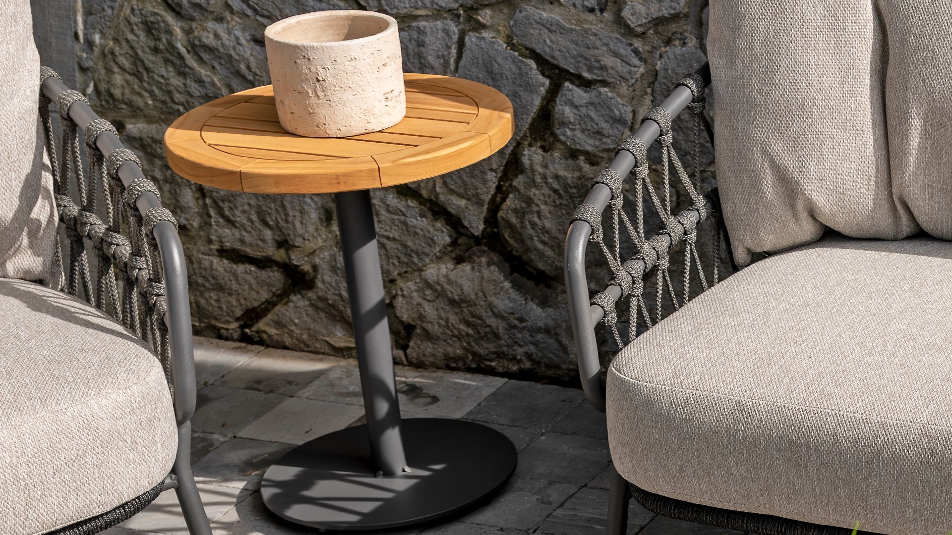 1 x 4Seasons Outdoor Volta bijzettafel Teak Anthraciet Ø45xH55cm