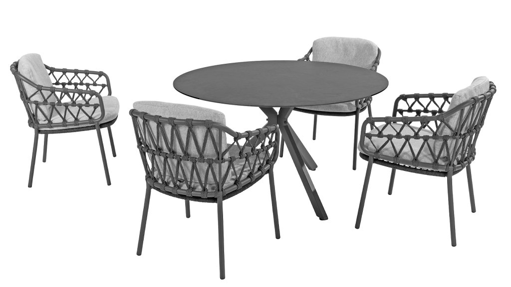 De Calpi dining van 4 Seasons Outdoor heeft een eigentijds design en geeft ieder terras de premium looks waar u naar op zoekt bent. De brede rope delen zijn op een originele manier gevlochten en geeft de Calpi een open karakter. De Calpi wordt geleverd met een zit- en rugkussen in een all weather stof. Deze stof heeft een water en vuil werende werking, waardoor deze bestand zijn tegen vele weersinvloeden. De Calpi serie is een complete familie binnen de prachtige collectie van 4 Seasons Outdoor. Zo kunt u door combineren in een loungeset en/of een low dining set in geheel dezelfde stijl.