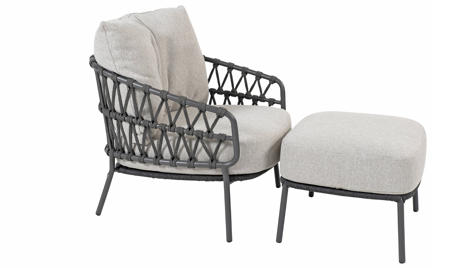 De Calpi serie van 4 Seasons Outdoor heeft een eigentijds design en geeft ieder terras de premium looks waar u naar op zoekt bent. De brede rope delen zijn op een originele manier gevlochten en geeft de Calpi een open karakter. De 4Seasons Calpi wordt geleverd met kussens in een all weather stof. Deze stof heeft een water en vuil werende werking, waardoor deze bestand zijn tegen vele weersinvloeden. Het frame is gemaakt van gepoedercoat RVS, waardoor de 4SO Calpi Loungeset zeer geschikt is om het hele jaar door buiten te laten staan. Bekijk ook de 4SO Calpi Dining of 4SO Calpi Low Dining!