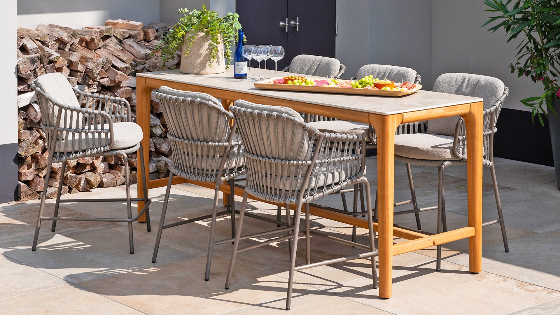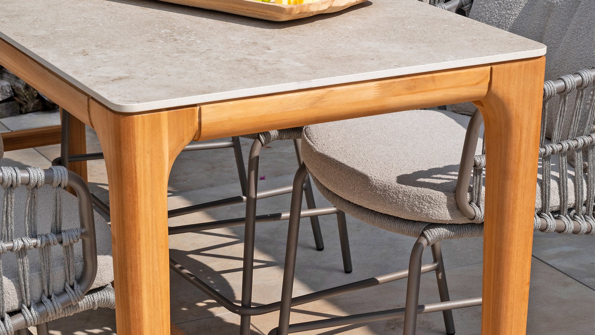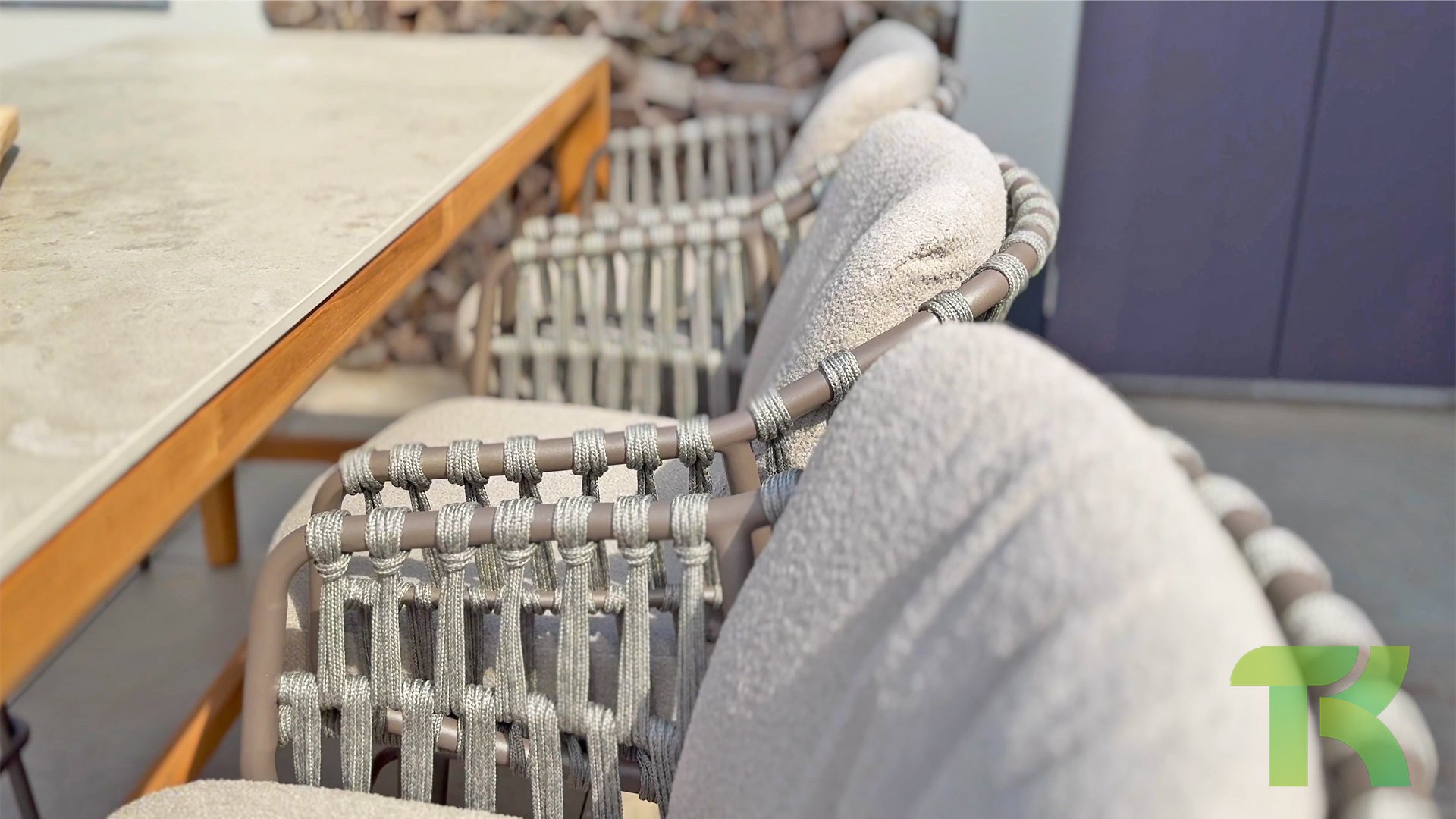 - Stijlvolle afwerking: De combinatie van taupe kussens, grijs rope draad en het terre frame geeft de stoel een moderne, yet tijdloze uitstraling die perfect past bij diverse buiteninrichtingen.