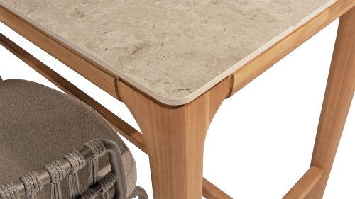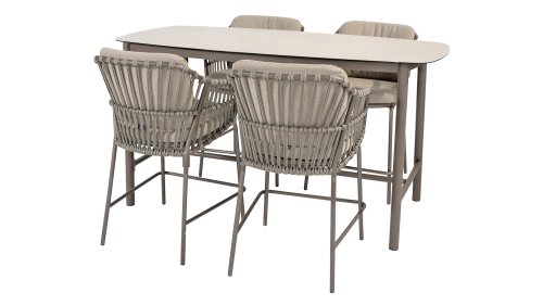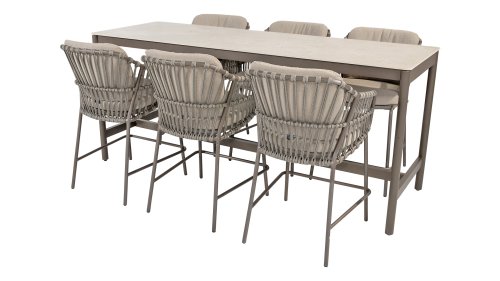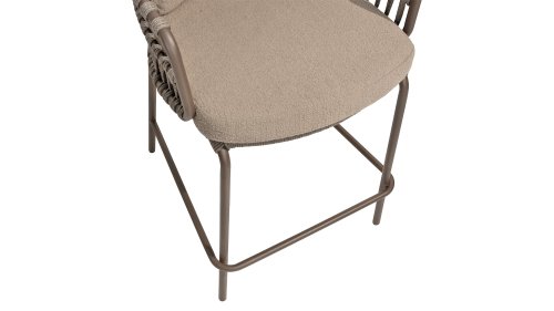 Wat deze stoel echt uniek maakt, is de combinatie van taupe kussens en een terre kleurig frame, wat een warme en verfijnde uitstraling geeft die past bij verschillende buitenomgevingen. De kussens zijn gestoffeerd met Bouclé, een luxe stof die zacht en aangenaam aanvoelt, terwijl ze tegelijkertijd Olefin bevatten – een materiaal dat zeer goed bestand is tegen verkleuring door zonlicht en weerbestendig is. Dit maakt de 4Seasons Capalbio Counter Chair niet alleen mooi, maar ook praktisch en onderhoudsvriendelijk. De Capalbio biedt wel wat mogelijkheden, zo is er in deze serie de volgende varianten verkrijgbaar: Loungeset, Tuinset, Low-Diningset & Counterset.