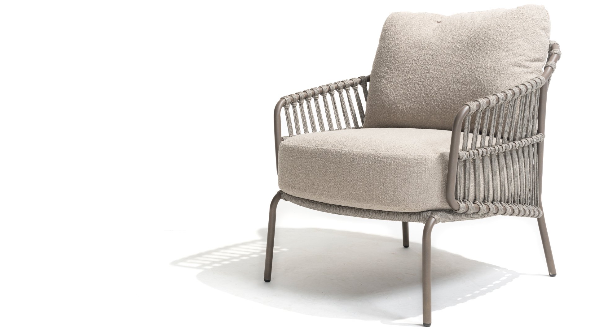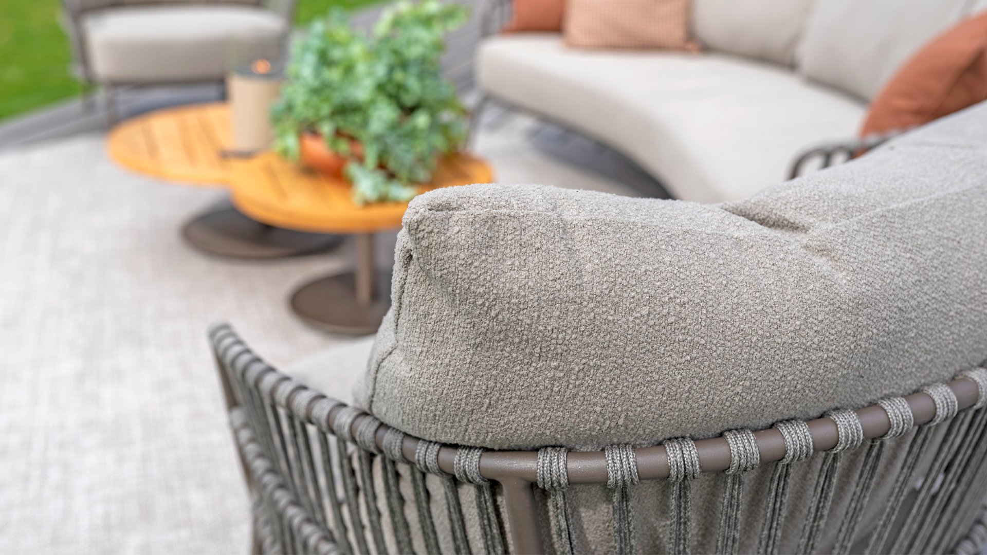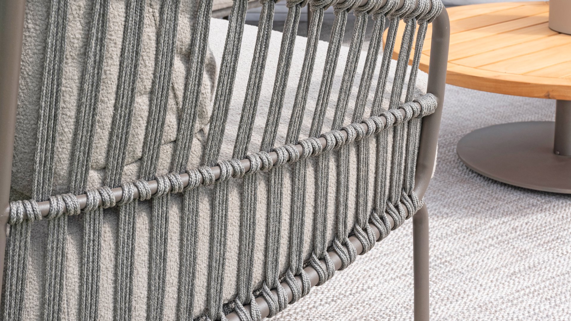Ervaar het ultieme lounge comfort met de 4 Seasons Capalbio loungeset. Deze lounge is ontworpen om je te laten wegdromen in de extra dikke kussens van zachte bouclé stof. De moderne vormgeving, met zijn elegante rondingen en open Rope patronen, voegt een stijlvolle touch toe aan elke tuin. De Capalbio tuinmeubelen zijn onderdeel van de 2025 collectie van 4 Seasons Outdoor. De Capalbio modellen combineren hoge outdoor kwaliteit met ongeëvenaard comfort. U heeft een ruime keuze uit Capalbio meubelen, variërend van extra lage en hoge dining chairs tot een complete en zeer royale Capalbio loungeset met voetenbank.