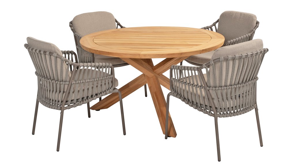 De topper van de collectie kun je deze tafel gerust noemen. Het kwalitatieve teak, in combinatie met de fraaie kruispoot, maken van deze Taste by 4Seasons Prado 130cm tafel, een pareltje. Te combineren met vrijwel elke diningstoel uit onze collectie is er voor ieder wat wils. Eventueel met de Prado Lazy Susan te combineren en ook verkrijgbaar met een antraciet aluminium frame Taste 4Seasons Prado 130 Antraciet of latte Taste 4Seasons Prado 130 Latte.
