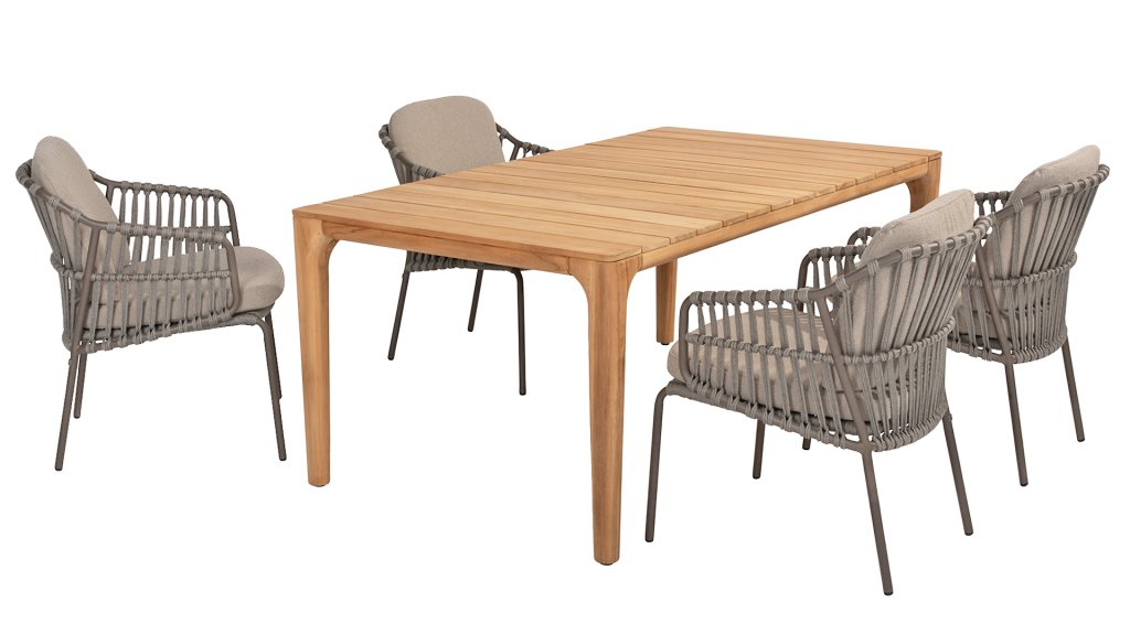 Met de Liam tafel van Taste 4SO kunt u genieten van de tijdloze charme en duurzaamheid van teakhout terwijl je dineert in de open lucht. Verkrijgbaar in volledig teakhout en teakhout-keramiek: