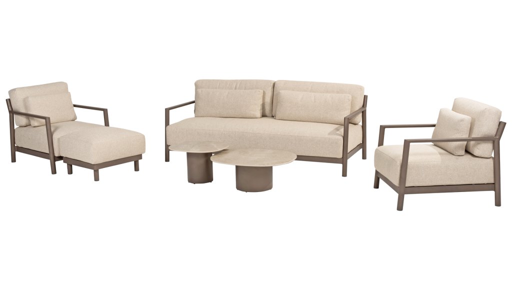 Ervaar ultiem comfort en stijlvolle eenvoud met de Capresi lounge van 4 Seasons Outdoor. Deze prachtige loungeset, uitgevoerd in een elegante Terre kleur, heeft een sobere vormgeving die perfect aansluit bij hedendaagse tuinen. Het volledig aluminium frame is ontworpen met sublieme rondingen, terwijl de dikke lounge kussens voor een heerlijk contrast en optimaal comfort zorgen.