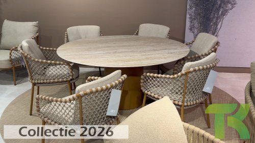 Een prachtige, elegante tafel met een schitterende ronde keramieken blad. Deze tafel heeft een afmeting van Ø160cm, waardoor hij perfect is voor sociale bijeenkomsten of familiediners. Het keramische blad biedt niet alleen een elegante uitstraling, maar is ook duurzaam en gemakkelijk schoon te maken, wat hem ideaal maakt voor dagelijks gebruik.