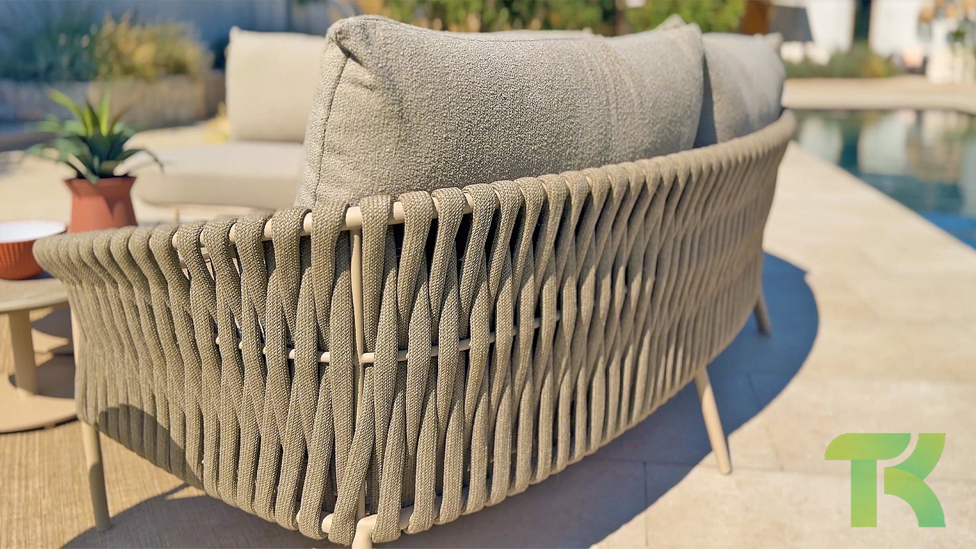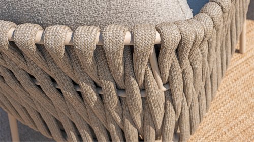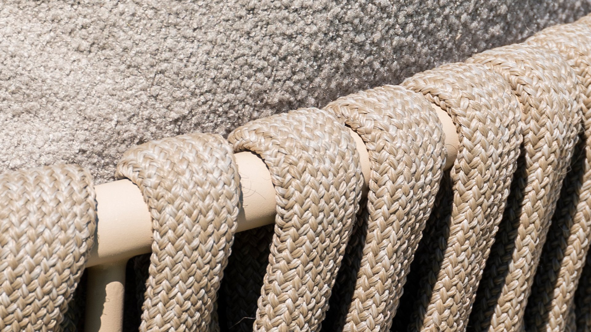 Dit prachtige materiaal is perfect voor buitengebruik, want 4SO Rope is niet zo maar een gewone veter waar u uw schoenen mee strikt. 4Seasons gebruikt zeer hoge kwalitiets Rope gemaakt van 100% SDP ( Slution Dyed Polypropylene). Dit materiaal is extreem sterk en heeft een zeer klein rekbaarheids percentage. Polyproylene is op olie basis waardoor vuil en verontreiniging nauwelijks in kan dringen, net als onze kussens. 4Seasons biedt exclusieve designs, waarbij hand geweven Rope patronen en technieken worden gebruikt.