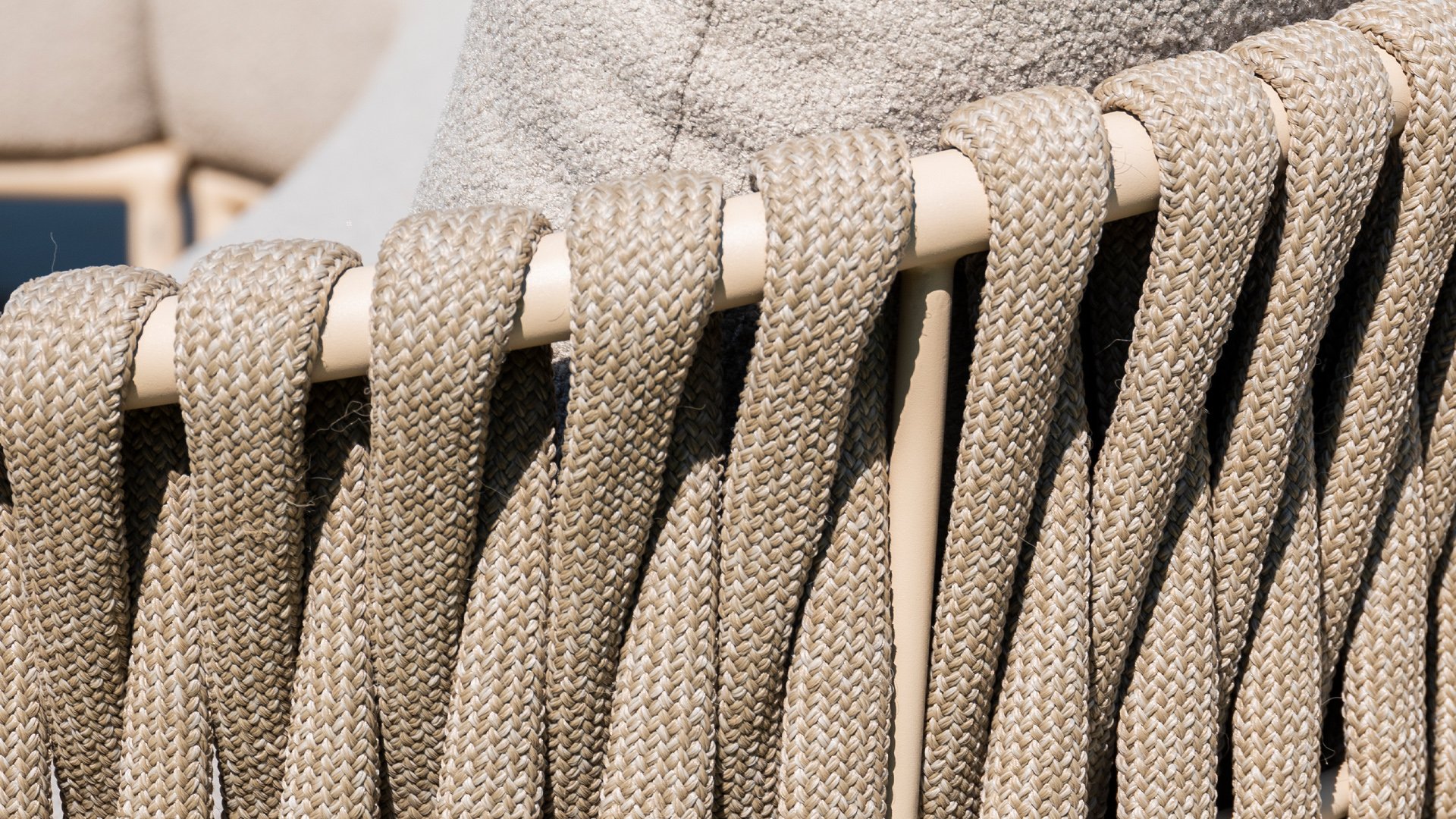 Dit prachtige materiaal is perfect voor buitengebruik, want 4SO Rope is niet zo maar een gewone veter waar u uw schoenen mee strikt. 4Seasons gebruikt zeer hoge kwalitiets Rope gemaakt van 100% SDP ( Slution Dyed Polypropylene). Dit materiaal is extreem sterk en heeft een zeer klein rekbaarheids percentage. Polyproylene is op olie basis waardoor vuil en verontreiniging nauwelijks in kan dringen, net als onze kussens. 4Seasons biedt exclusieve designs, waarbij hand geweven Rope patronen en technieken worden gebruikt.
