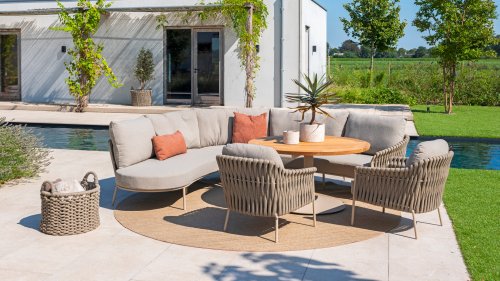 De 4Seasons Comino loungesets bieden een nieuwe kijk op loungen. De zit is iets hoger, waardoor er de mogelijkheid is om deze lounge zowel aan een low-dining of koffietafel te combineren. Het chique design met de warme kleuren geven extra luxe uitstraling. Met de royale, dikke kussens biedt deze loungebank een heerlijk loungecomfort, ideaal voor ontspanning in uw tuin of op uw terras.