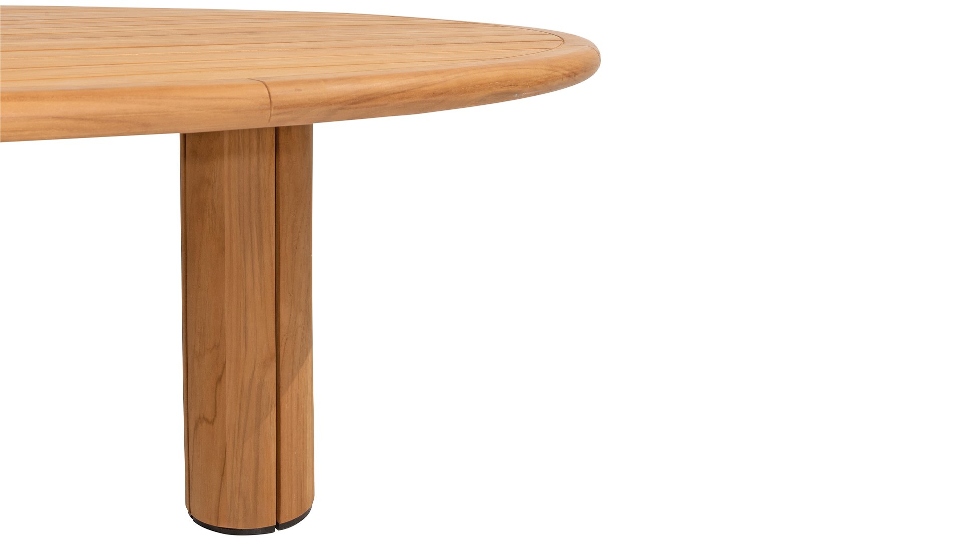 De ronde poten zorgen voor stabiliteit en dragen bij aan het strakke design van de tafel. De natuurlijke tinten en de prachtige nerf van het teakhout zorgen ervoor dat elke tafel uniek is, met een warme, uitnodigende uitstraling. Deze tafel is perfect voor sociale bijeenkomsten en dagelijkse maaltijden. Een echte blikvanger die functionaliteit en esthetiek combineert. Ook verkrijgbaar in Pebble vorm.