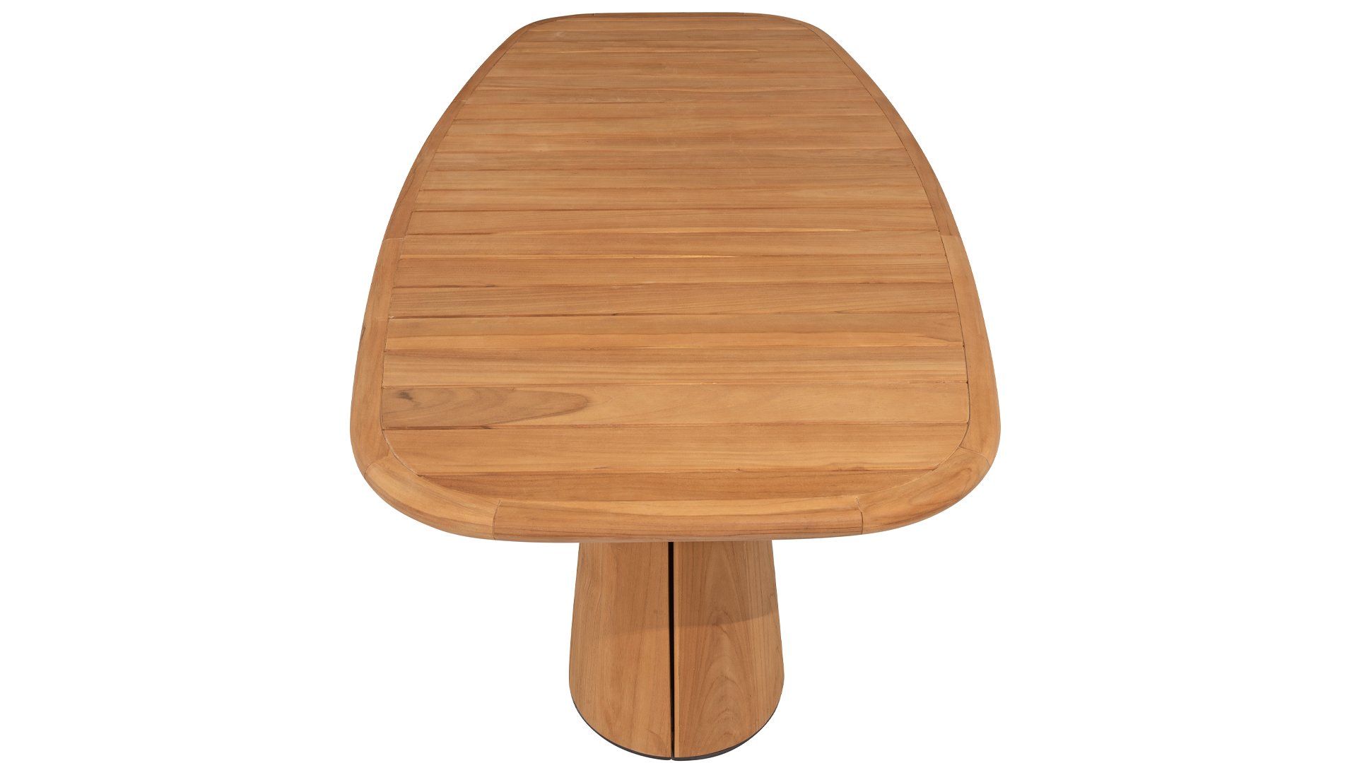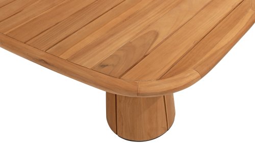 De ronde poten zorgen voor stabiliteit en dragen bij aan het strakke design van de tafel. De natuurlijke tinten en de prachtige nerf van het teakhout zorgen ervoor dat elke tafel uniek is, met een warme, uitnodigende uitstraling. Deze tafel is perfect voor sociale bijeenkomsten en dagelijkse maaltijden. Een echte blikvanger die functionaliteit en esthetiek combineert. Ook verkrijgbaar in de volgende maten:
