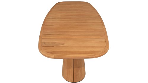 De Capri is een prachtige toevoeging aan elk interieur, volledig vervaardigd uit hoogwaardig teakhout. Het blad heeft een valse ovale vorm, wat een speelse en toch elegante uitstraling geeft. Deze unieke vorm biedt meer ruimte voor diners en gesprekken, terwijl het een modern en organisch gevoel toevoegt aan de ruimte.