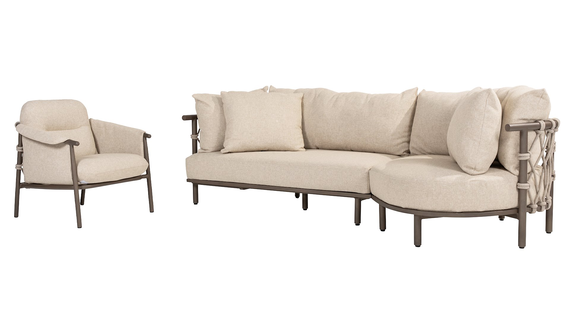 Ervaar ultiem comfort en stijlvolle elegantie met de Ezra lounge van 4 Seasons Outdoor. Deze prachtige loungeset, uitgevoerd in een elegante Terre kleur, heeft een schitterende vormgeving die perfect aansluit bij hedendaagse tuinen. Het volledig aluminium frame is ontworpen met sublieme rondingen, terwijl de dikke lounge kussens voor een heerlijk contrast en optimaal comfort zorgen. In combinatie met het dikke Rope een prachtig set!