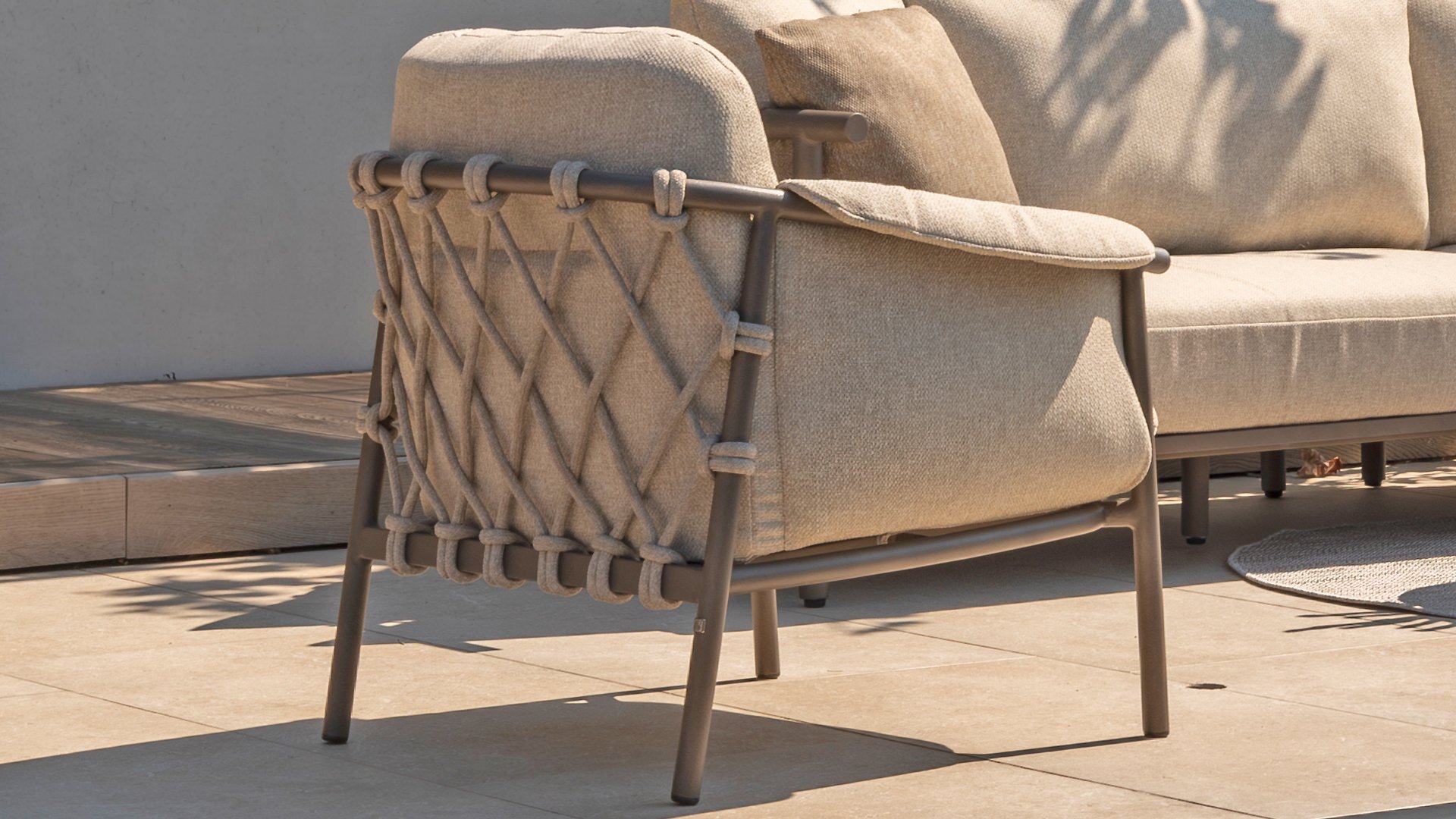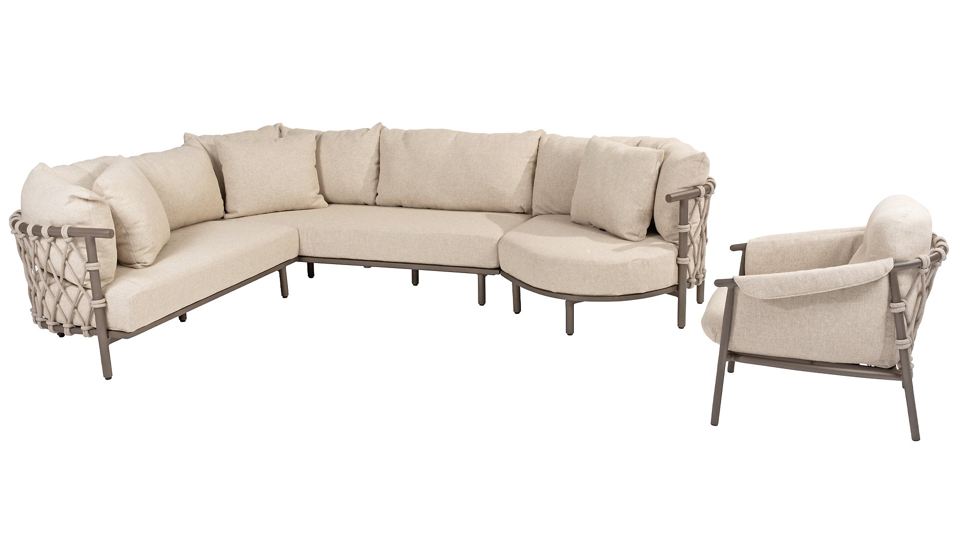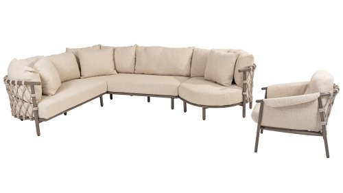 Ervaar ultiem comfort en stijlvolle elegantie met de Ezra lounge van 4 Seasons Outdoor. Deze prachtige loungeset, uitgevoerd in een elegante Terre kleur, heeft een schitterende vormgeving die perfect aansluit bij hedendaagse tuinen. Het volledig aluminium frame is ontworpen met sublieme rondingen, terwijl de dikke lounge kussens voor een heerlijk contrast en optimaal comfort zorgen. In combinatie met het dikke Rope een prachtig set!