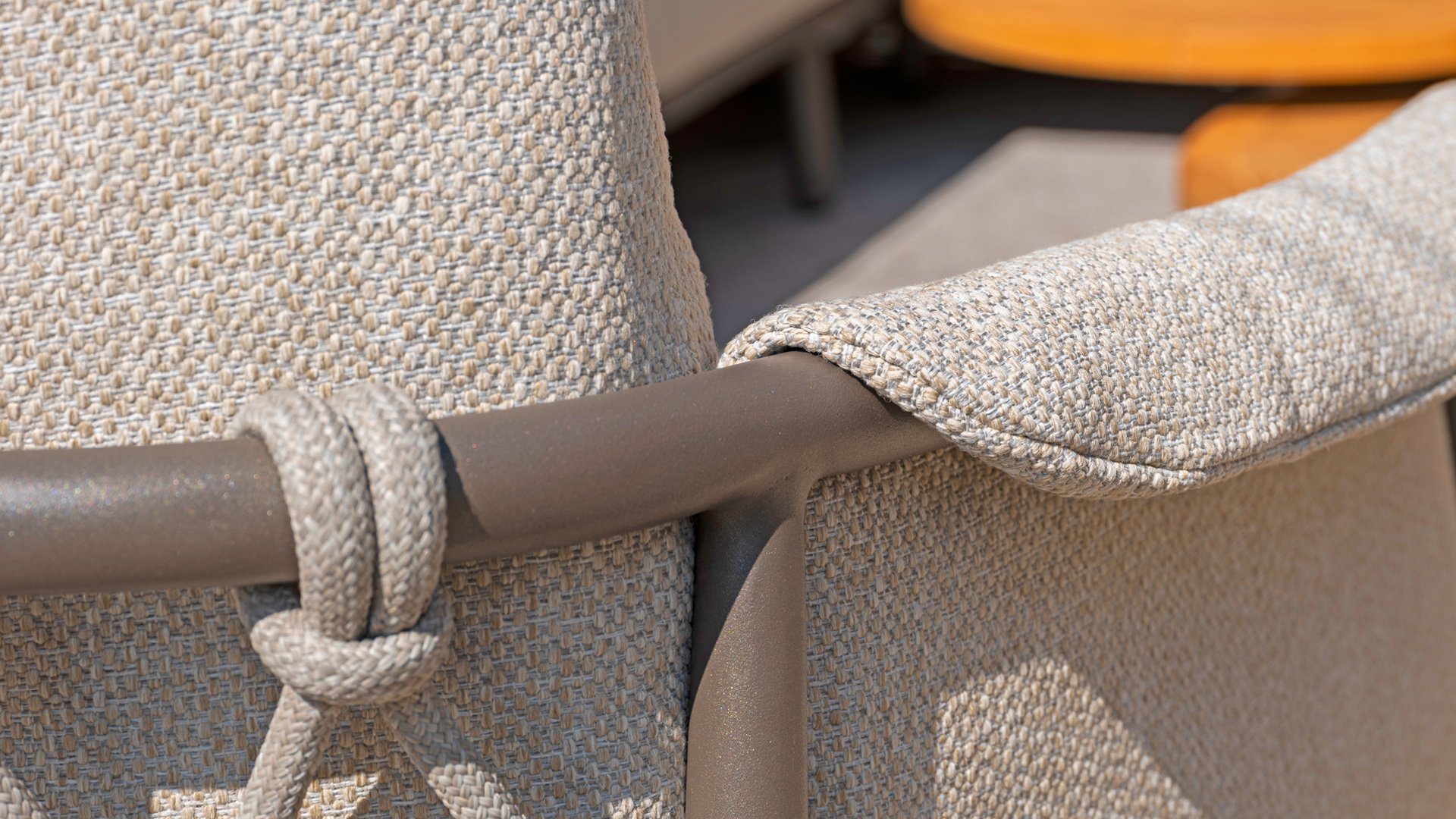 Dit prachtige materiaal is perfect voor buitengebruik, want Taste Rope is niet zo maar een gewone veter waar u uw schoenen mee strikt. Taste gebruikt zeer hoge kwaliteits Rope gemaakt van 100% SDP (Slution Dyed Polypropylene). Dit materiaal is extreem sterk en heeft een zeer klein rekbaarheids percentage. Polyproylene is op olie basis waardoor vuil en verontreiniging nauwelijks in kan dringen, net als onze kussens. Taste biedt exclusieve designs, waarbij hand geweven Rope patronen en technieken worden gebruikt.