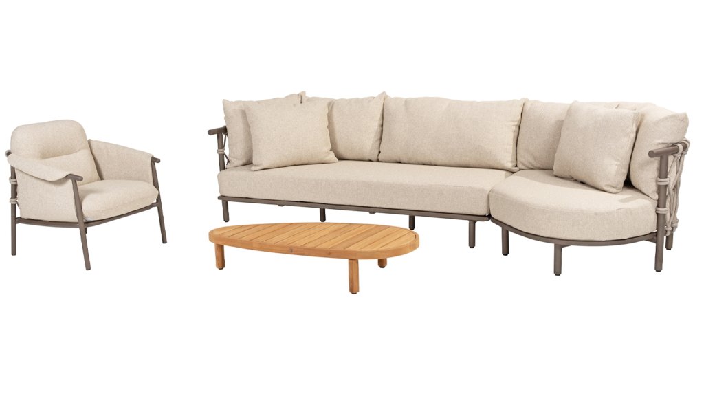Ervaar ultiem comfort en stijlvolle elegantie met de Ezra lounge van 4 Seasons Outdoor. Deze prachtige loungeset, uitgevoerd in een elegante Terre kleur, heeft een schitterende vormgeving die perfect aansluit bij hedendaagse tuinen. Het volledig aluminium frame is ontworpen met sublieme rondingen, terwijl de dikke lounge kussens voor een heerlijk contrast en optimaal comfort zorgen. In combinatie met het dikke Rope een prachtig set!