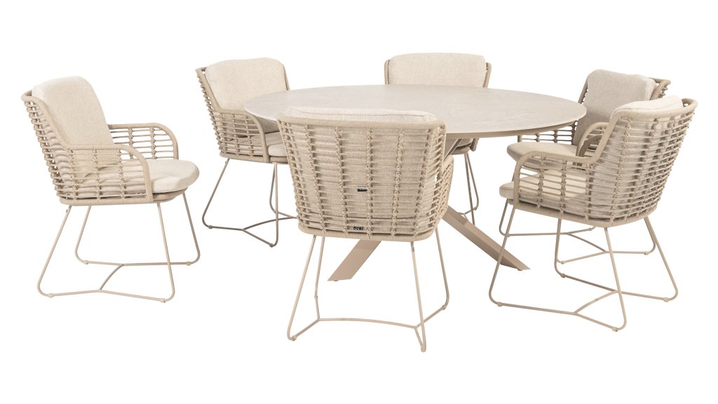 Gemaakt van de beste materialen, gemaakt met passie. Deze prachtige 4Seasons Fabrice dining serie heeft niet alleen flair, maar ook een uitstekend zitcomfort. De stoel is ook verkrijgbaar in de volgende kleuren: Antracite, Latte en Terre. De gebruikte materialen zijn kunststof rope, olefin & aluminium. Kunststof rope bevat een kern wat zorgt voor kleurvastheid en maakt het schimmelbestendig. Olefin maakt de kussens ook kleurvast en waterbestendig, de stof voelt ook comfortabel aan. Het onderstel van de Fabrice is aluminium dat is gepoedercoated om het strakke design af te maken! Ook verkrijgbaar in lounge: 4SO Fabrice Hoek-Loungeset & 4SO Fabrice Loungeset.