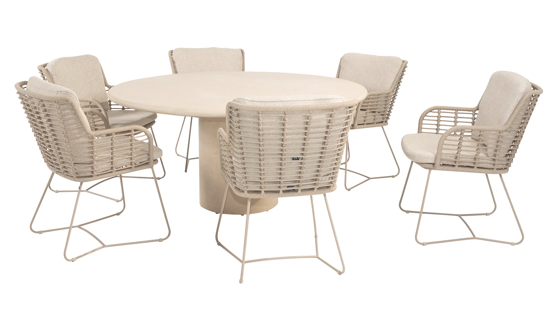 Gemaakt van de beste materialen, gemaakt met passie. Deze prachtige 4Seasons Fabrice dining serie heeft niet alleen flair, maar ook een uitstekend zitcomfort. De stoel is ook verkrijgbaar in de volgende kleuren: Antracite, Latte en Terre. De gebruikte materialen zijn kunststof rope, olefin & aluminium. Kunststof rope bevat een kern wat zorgt voor kleurvastheid en maakt het schimmelbestendig. Olefin maakt de kussens ook kleurvast en waterbestendig, de stof voelt ook comfortabel aan. Het onderstel van de Fabrice is aluminium dat is gepoedercoated om het strakke design af te maken! Ook verkrijgbaar in lounge: 4SO Fabrice Hoek-Loungeset & 4SO Fabrice Loungeset.