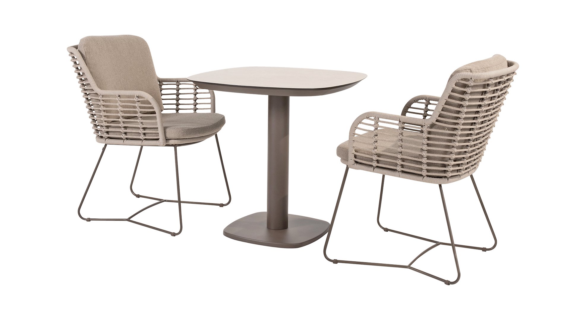 De Taste by 4 Seasons Outdoor Manolo 75cm is verkrijgbaar in drie trendy kleuren: Latte, een warme, neutrale tint die gemakkelijk te combineren is met verschillende stoelen. Antraciet, een donkerdere kleur die een strakke, moderne look toevoegt. En Terre, een warme donkere aardetint. Deze veelzijdige tafel is ideaal voor zowel binnen- als buitenshuis en biedt een perfecte plek voor een kop koffie of een gezellig diner. Ook verkijgbaar in grotere varianten, namelijk 180x95x75cm én 240x103x75cm in 3 kleuren.