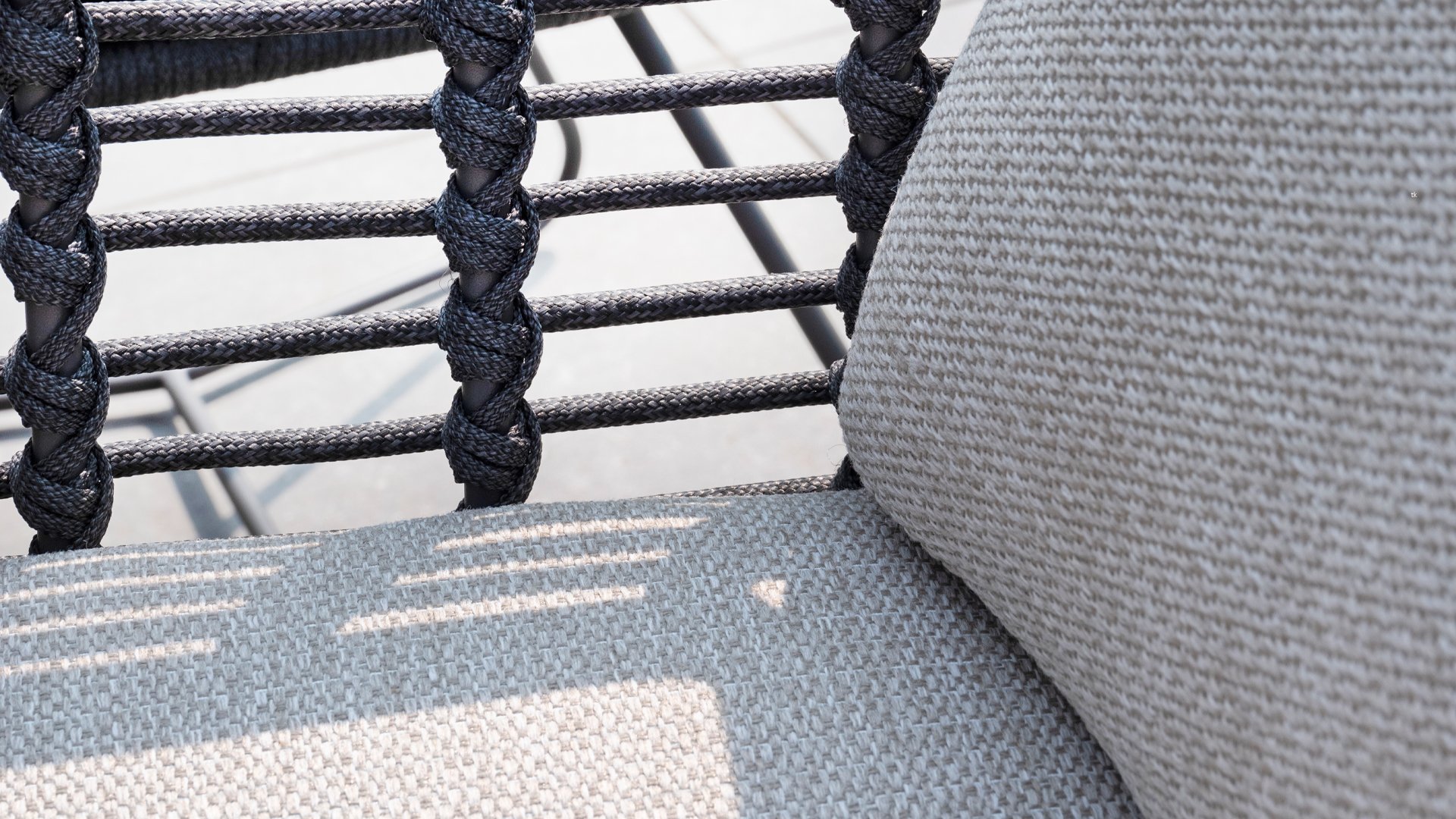 Dit prachtige materiaal is perfect voor buitengebruik, want 4SO Rope is niet zo maar een gewone veter waar u uw schoenen mee strikt. 4Seasons gebruikt zeer hoge kwalitiets Rope gemaakt van 100% SDP ( Slution Dyed Polypropylene). Dit materiaal is extreem sterk en heeft een zeer klein rekbaarheids percentage. Polyproylene is op olie basis waardoor vuil en verontreiniging nauwelijks in kan dringen, net als onze kussens. 4Seasons biedt exclusieve designs, waarbij hand geweven Rope patronen en technieken worden gebruikt.