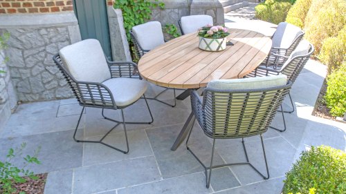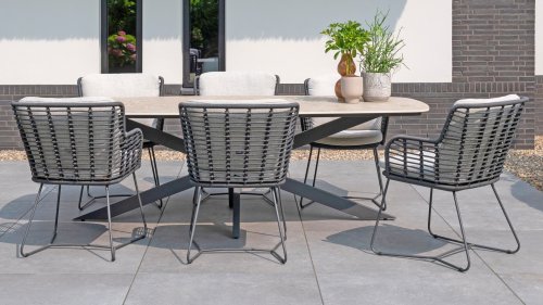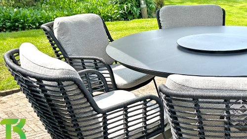 Gemaakt van de beste materialen, gemaakt met passie. Deze prachtige 4Seasons Fabrice dining serie heeft niet alleen flair, maar ook een uitstekend zitcomfort. Dit model is te verkrijgen in Antracite, Latte en Terre. De gebruikte materialen zijn kunststof rope, olefin & aluminium. Kunststof rope bevat een kern wat zorgt voor kleurvastheid en maakt het schimmelbestendig. Olefin maakt de kussens ook kleurvast en waterbestendig, de stof voelt ook comfortabel aan. Het onderstel van de Fabrice is aluminium dat is gepoedercoated om het strakke design af te maken! Ook verkrijgbaar in lounge: 4SO Fabrice Hoek-Loungeset & 4SO Fabrice Loungeset.