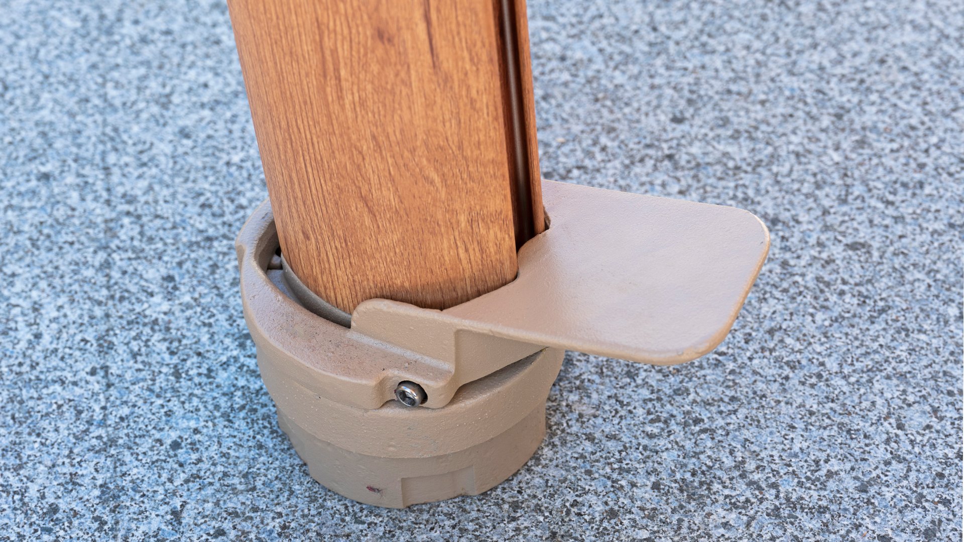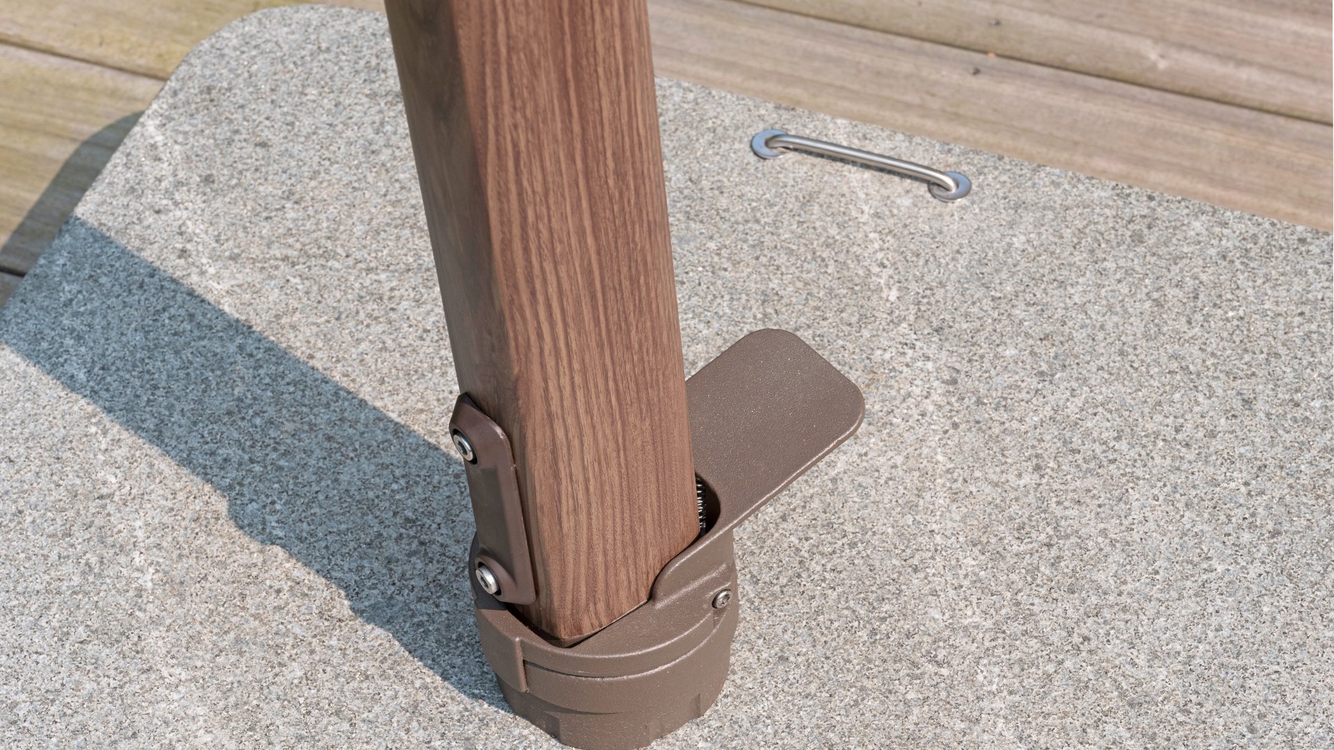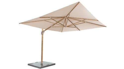 De Hacienda parasol heeft meerdere voet mogelijkheden. U kunt kiezen voor een grondverankering (inground base) of voor een voet van graniet. De granieten voet voor de Hacienda is leverbaar in 125 en 180 kilo. De 125 kg voet geeft in meeste gevallen voldoende stabiliteit. Op plaatsen waar de wind meer dan gemiddeld zich laat voelen, is een zwaardere voet een mogelijkheid.