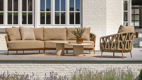 Maak kennis met de Hampton salontafels – een stijlvolle uitbreiding van de populaire Hampton-serie. Deze elegante tafels combineren dezelfde verfijnde vormgeving en natuurlijke uitstraling met het praktische gemak van compacte afmetingen. Gemaakt van hoogwaardig Mortex in een serene beige/witte kleur, brengen ze rust en karakter in elke loungehoek of terrasopstelling.