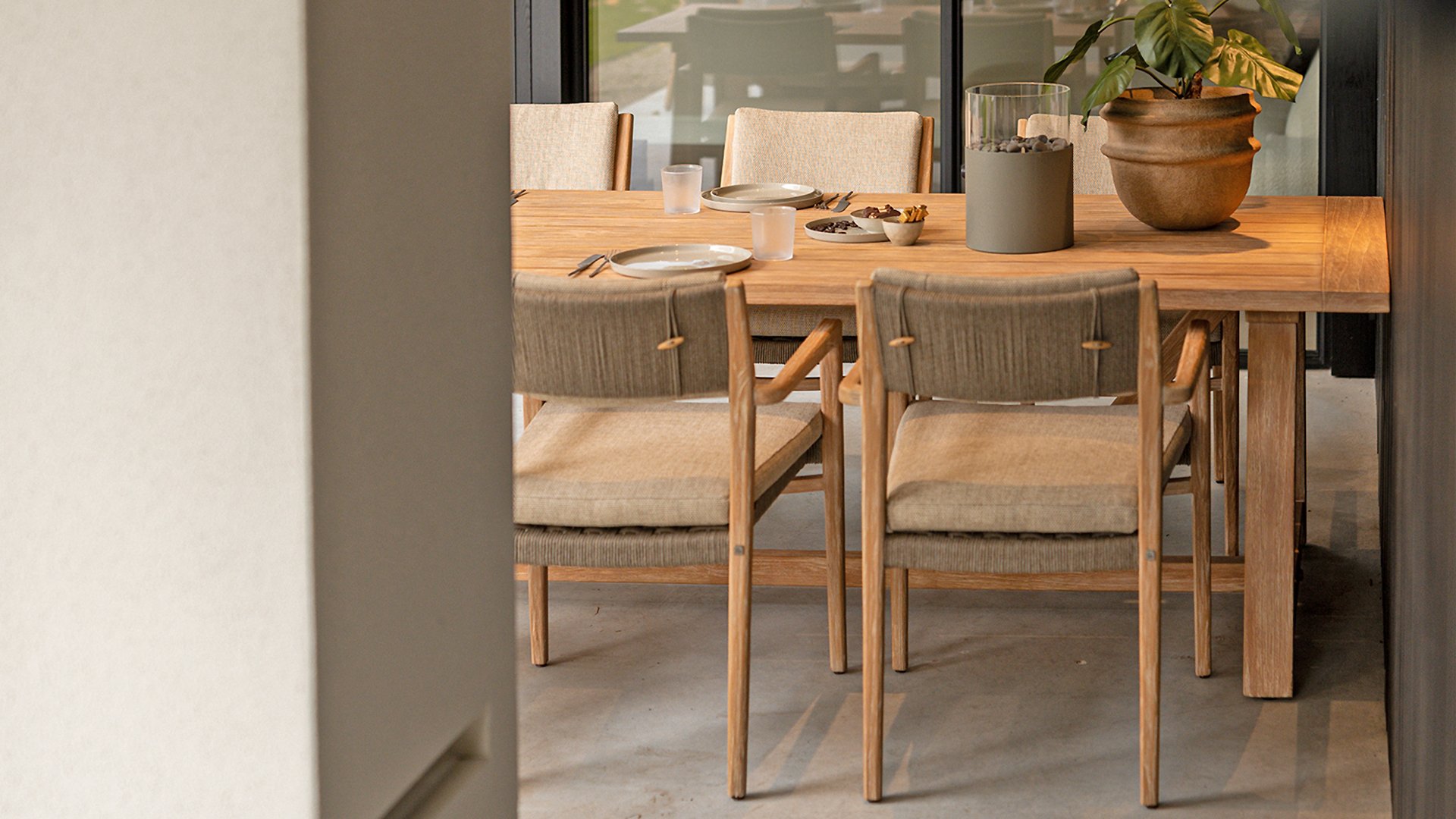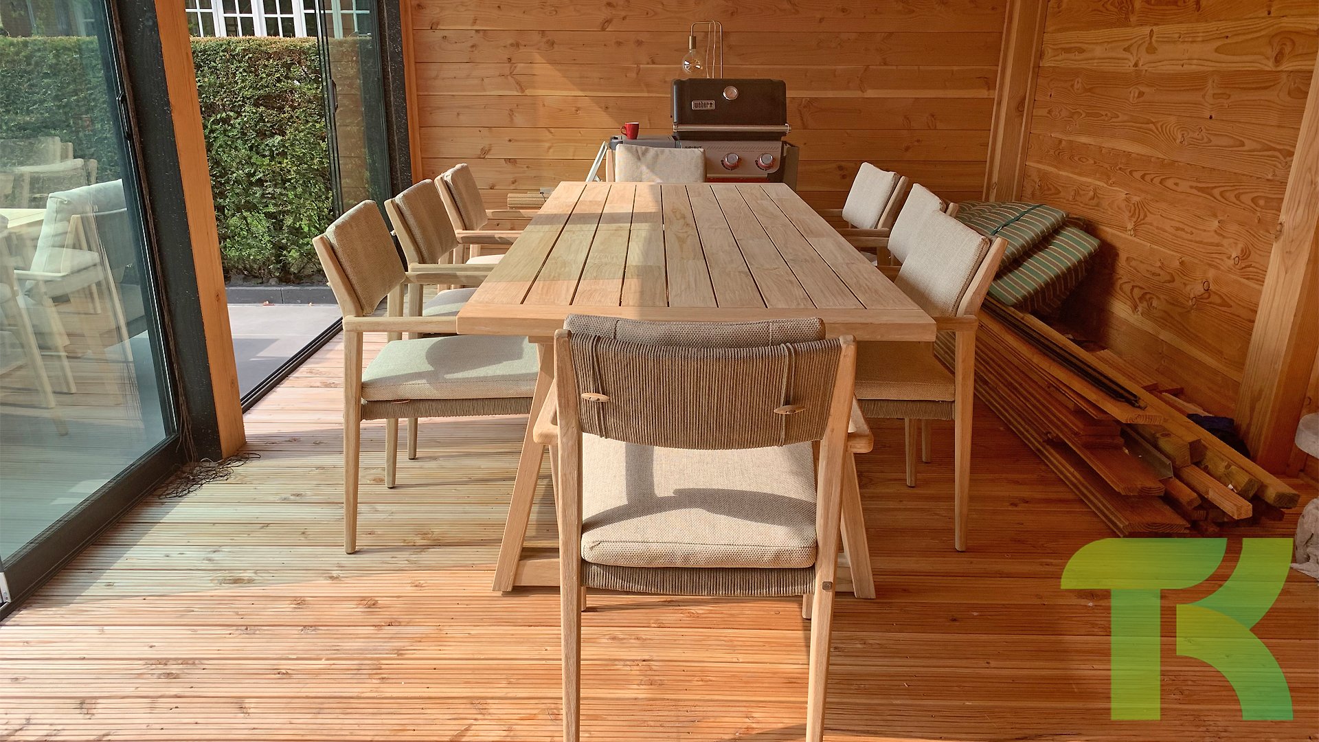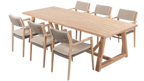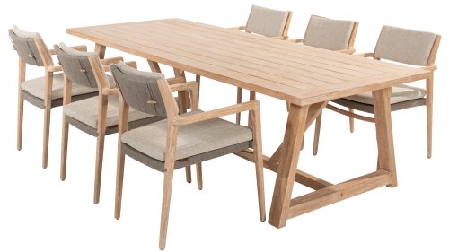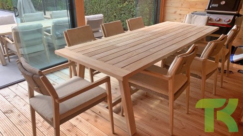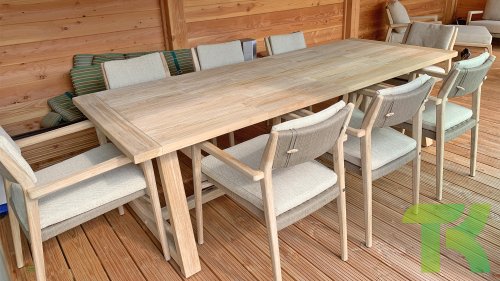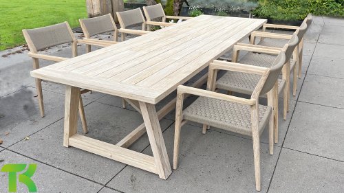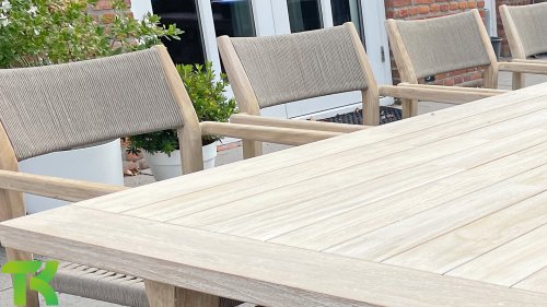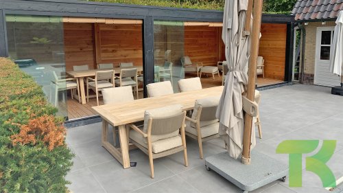 - Hoge kwaliteit teakhout: Het teakhouten frame staat garant voor duurzaamheid en een warme, natuurlijke uitstraling die past in elke buitenomgeving.