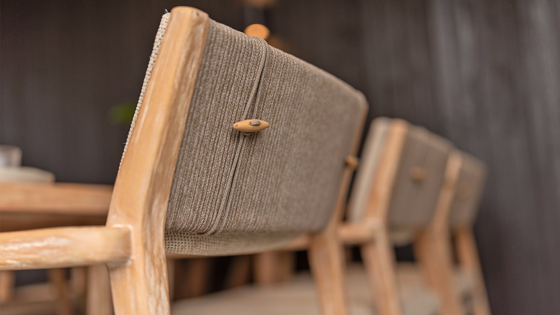 Een verbluffende verschijning Een frame van geborsteld teakhout is ombonden met taupe touw en afgewerkt met beige kussens, voor een eigentijds design dat naadloos opgaat in uw tuin. Julia is een uitzonderlijke serie, een 'natuurlijke schoonheid' met klasse.