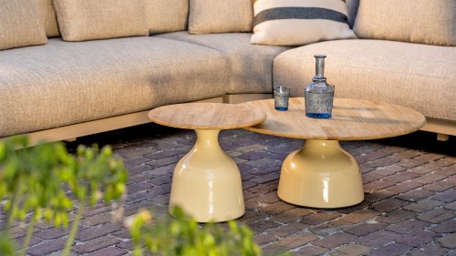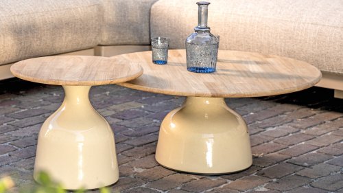 De 4 Seasons Outdoor June salontafelserie is een ode aan verfijnde eenvoud en natuurlijke luxe. Met een rond teakhouten blad en een opvallend keramisch high-gloss onderstel brengt June warmte en een moderne touch samen in één krachtig ontwerp.