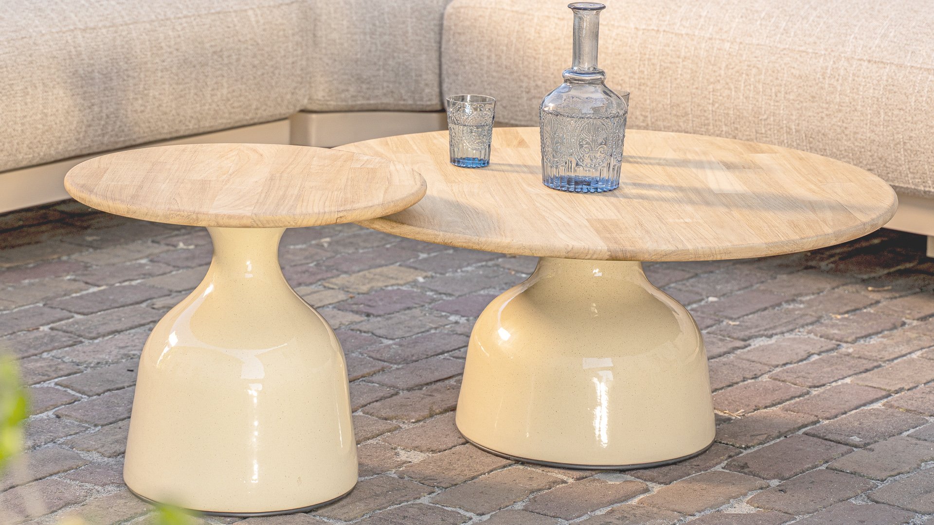 De 4 Seasons Outdoor June salontafelserie is een ode aan verfijnde eenvoud en natuurlijke luxe. Met een rond teakhouten blad en een opvallend keramisch high-gloss onderstel brengt June warmte en een moderne touch samen in één krachtig ontwerp.